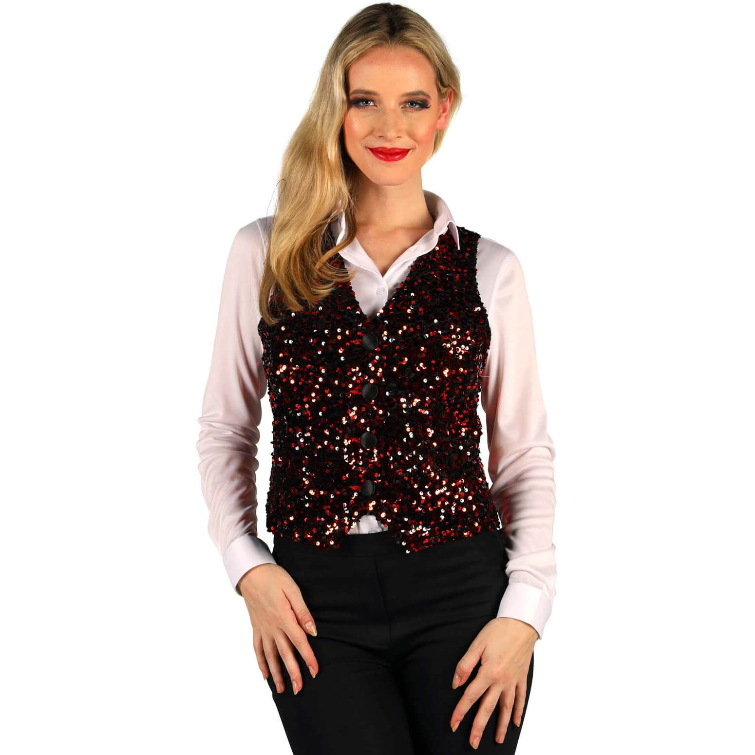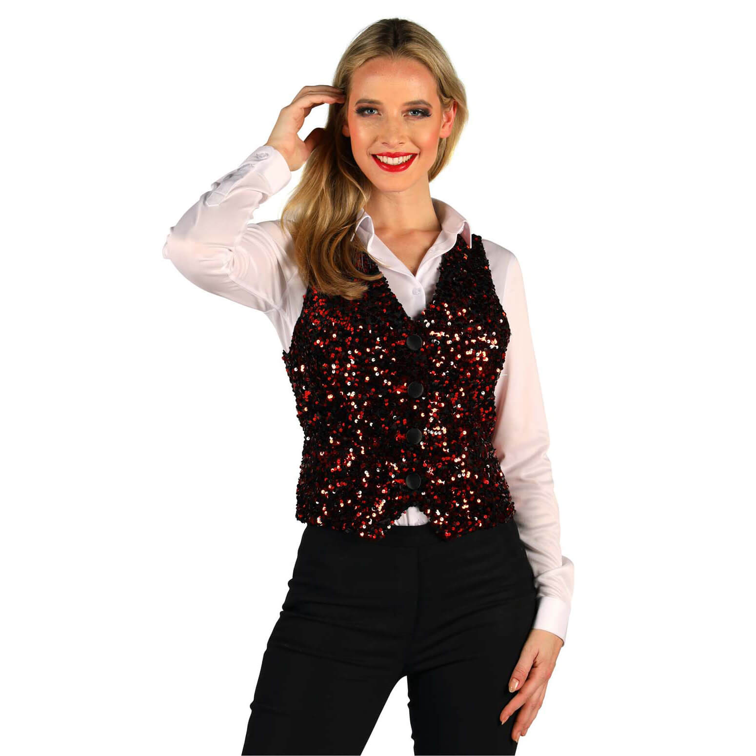 Show Pailletten Weste WEST END superdeluxe für Damen rot-schwarz
