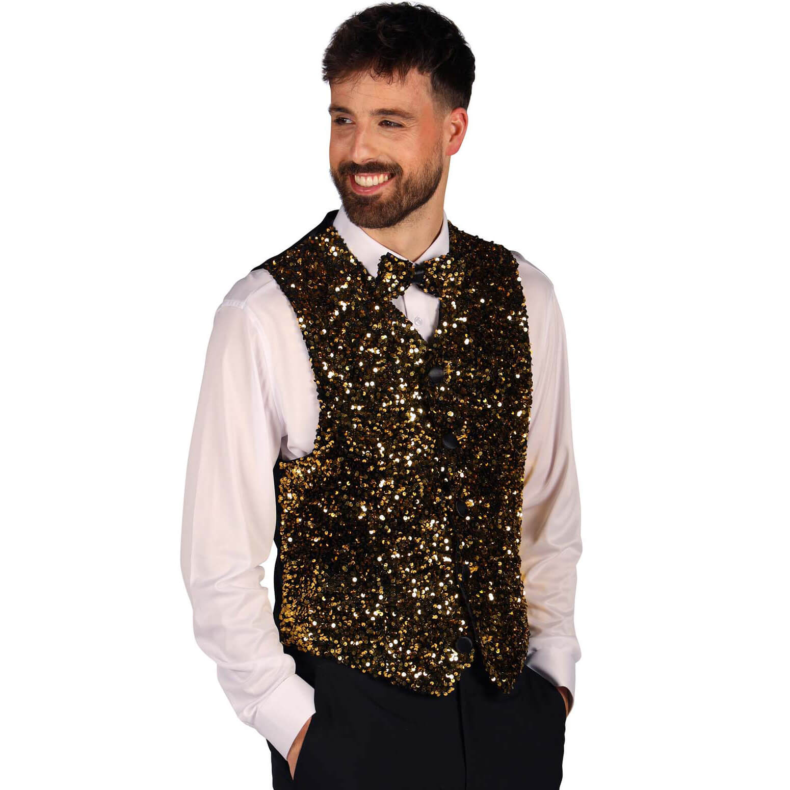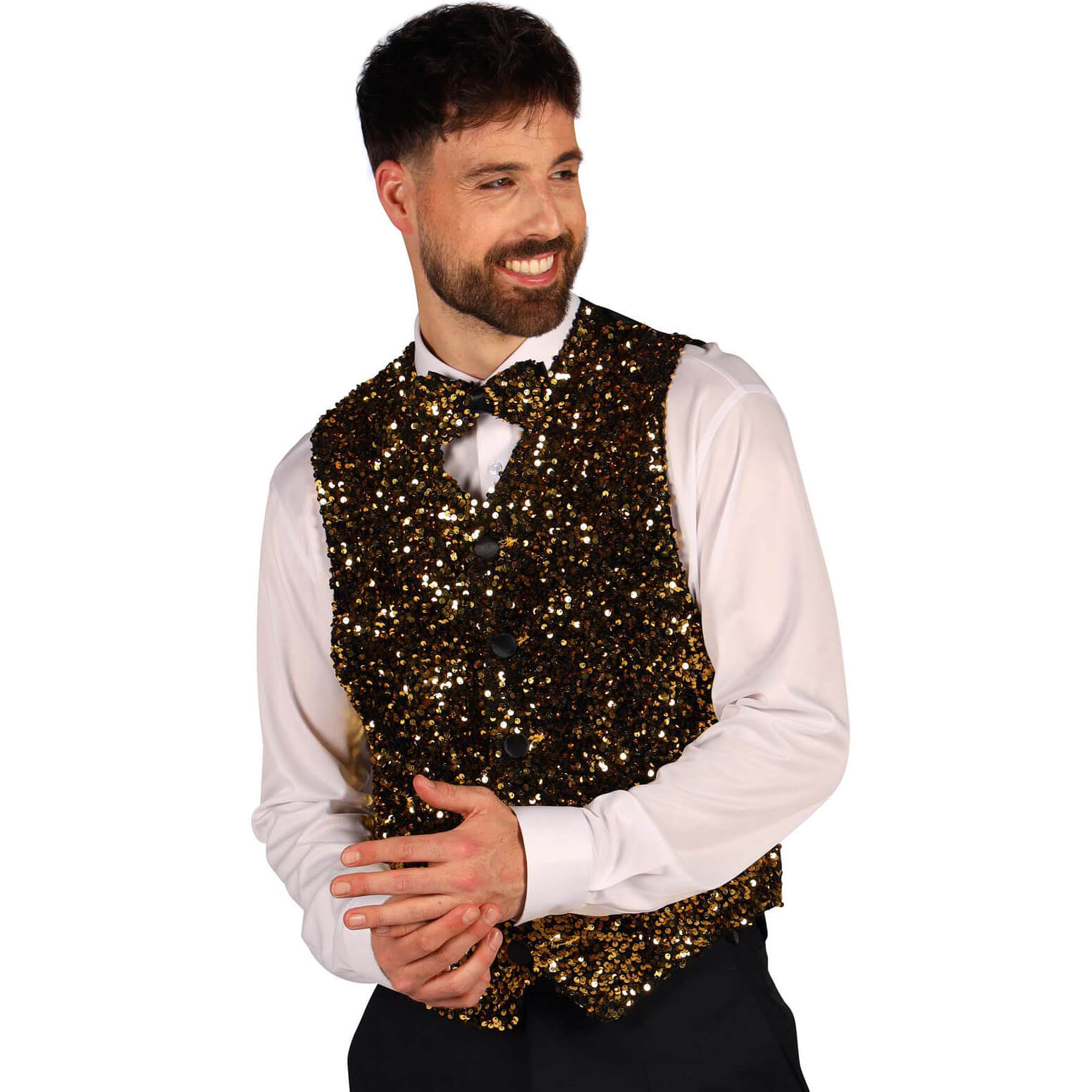 Show Pailletten Weste WEST END superdeluxe für Herren gold-schwarz – (ARTIKEL/REFERNZ: 8717653389889/TT4254GOBKS-8717653389872/TT4254GOBKM-8717653389865/TT4254GOBKL-8717653389896/TT4254GOBKXL-8717653389902/TT4254GOBKXXL-8717653389919/TT4254GOBK3XL – Kategorie/Suche: – Hersteller: Thetru BV)