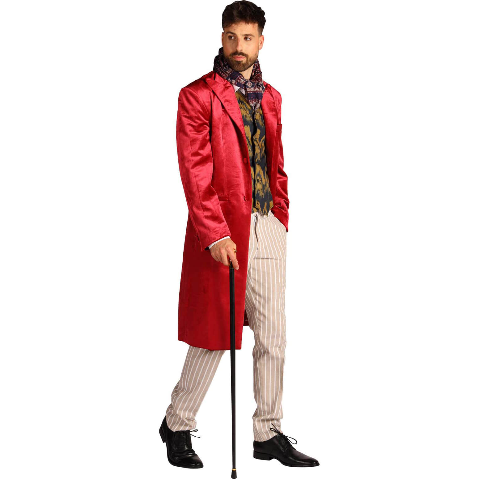 Edelmann Schokoladenmagnat Kostüm Anzug mit gestreifter Hose SCHOKOLADEN CHARLIE rot-beige