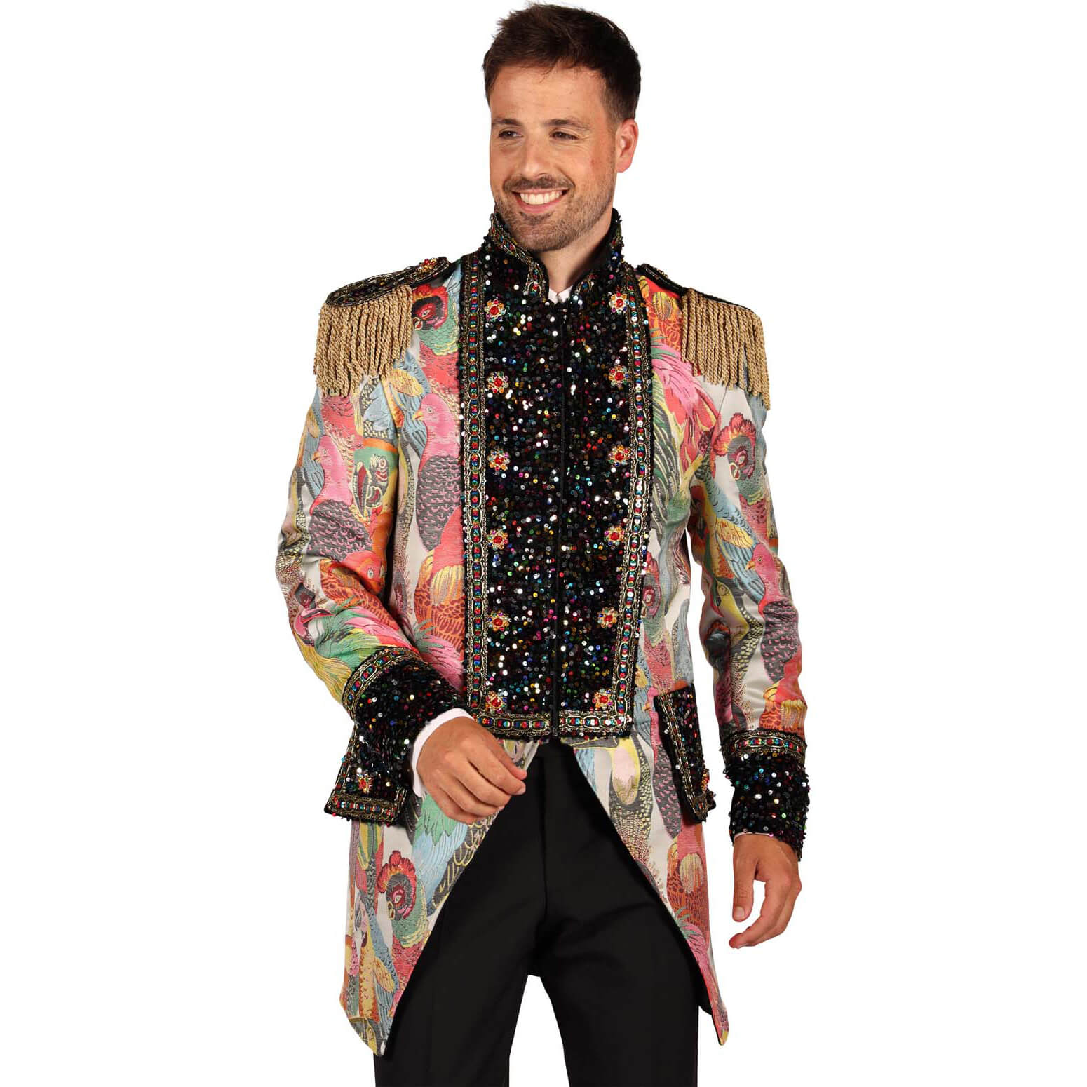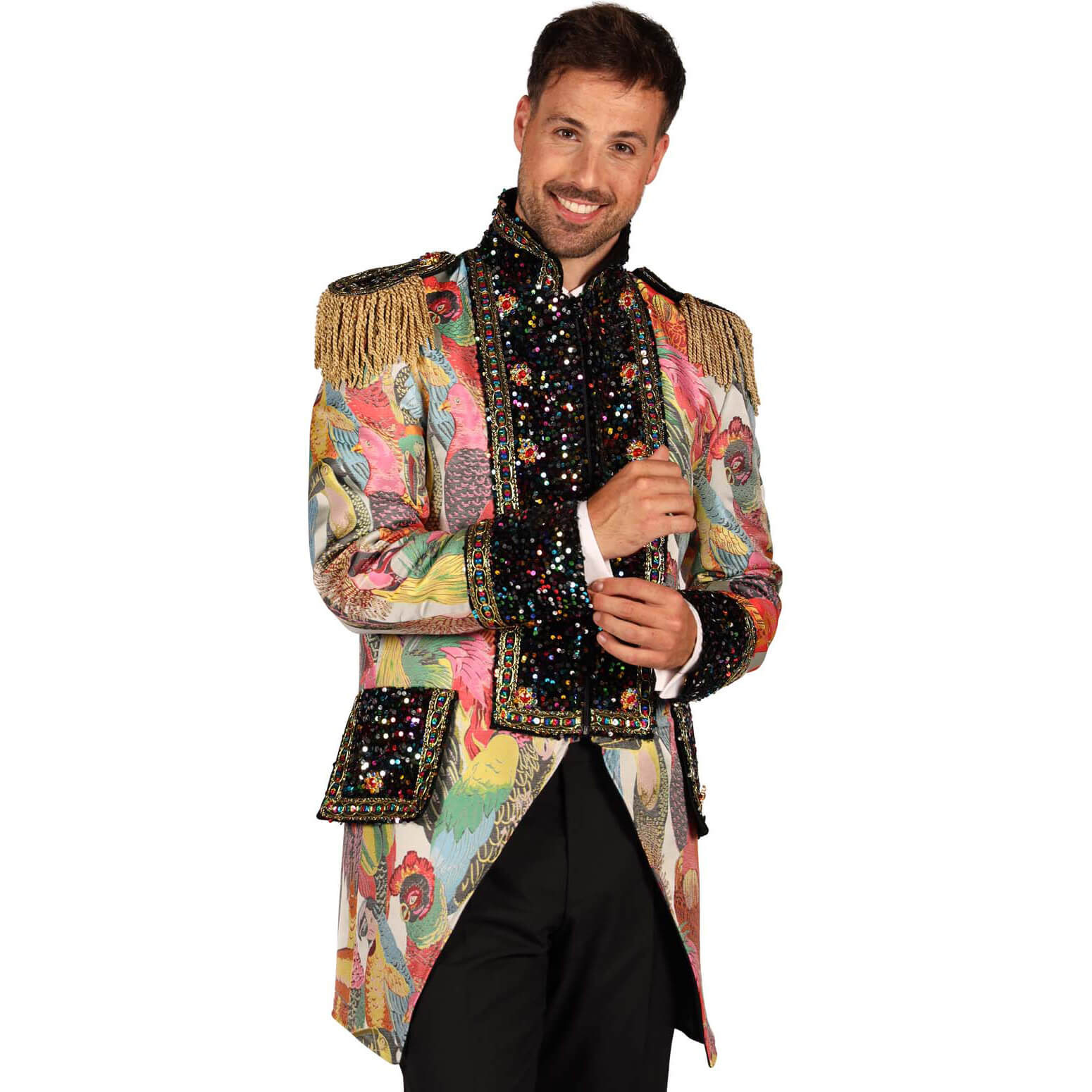 Edelherr/Zirkusdompteur Jacke mit Papageien und Pailletten COLOR BIRDS bunt-gold – (ARTIKEL/REFERNZ: 8717653399819/TT4355S-8717653399802/TT4355M-8717653399796/TT4355L-8717653399826/TT4355XL-8717653399833/TT4355XXL-8717653399840/TT4355XXXL – Kategorie/Suche: – Hersteller: Thetru BV)