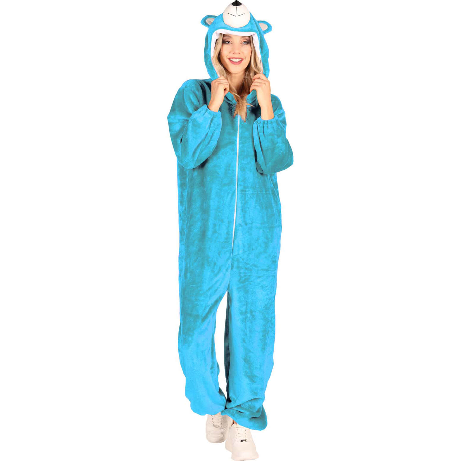 Bär Comicbär Plüschkostüm Overall Plüsch Deluxe mit Kapuze CANDY BEAR neonblau türkis-weiß – (ARTIKEL/REFERNZ: 8717653403905/TT4363NBXS/S-8717653403882/TT4363NBM/L-8717653403899/TT4363NBXL/XXL – Kategorie/Suche: Glücksbär Glücksbärchie Glücksbärchen Good Luck Bear – Hersteller: Thetru BV)