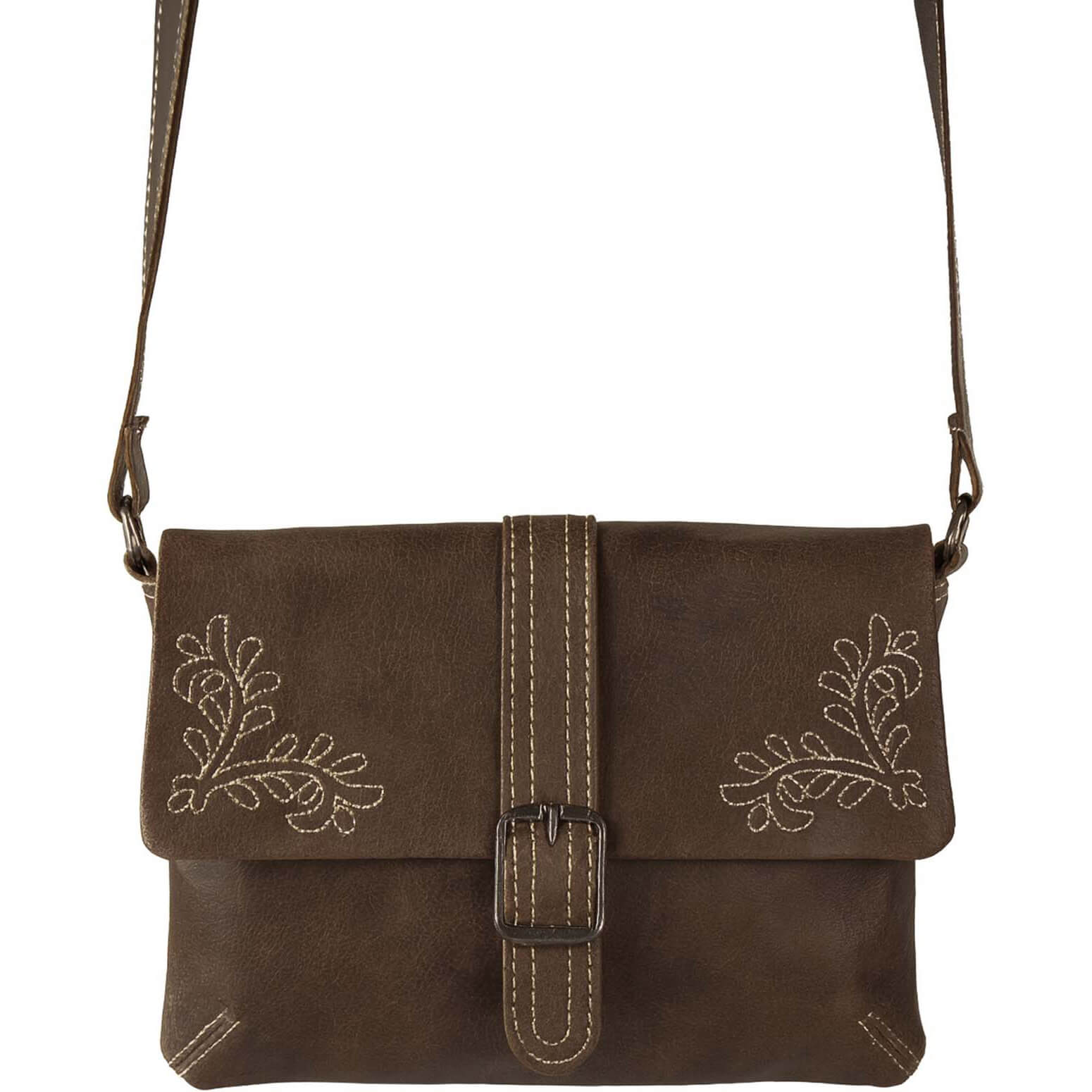 Trachten Handtasche Umhängetasche Deluxe mit Laubstickerei O Zapft dunkelbraun