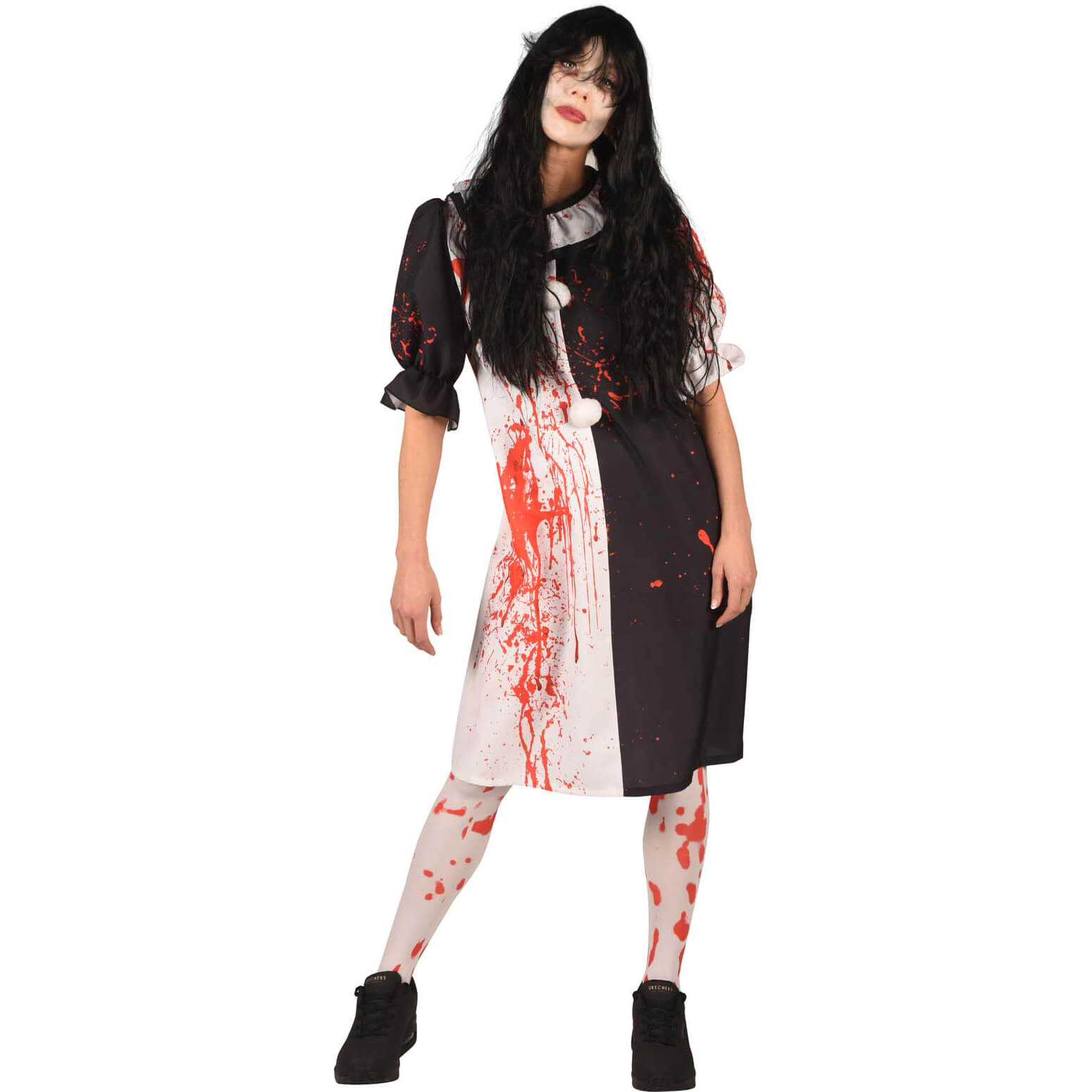 Horror Art Dame Kostüm Kleid kurz Clown Kleid schwarz-weiß mit Kragen blutig weiß-rot