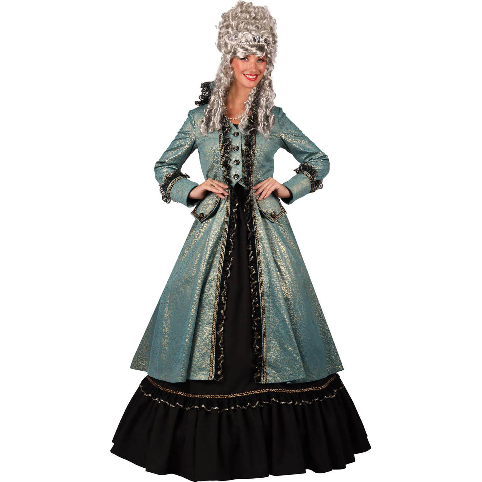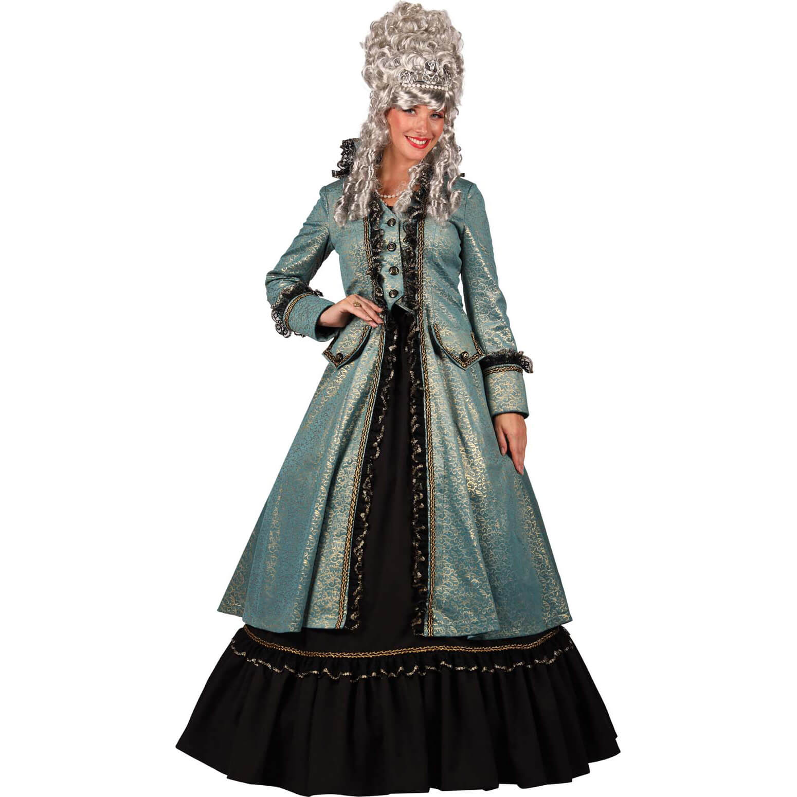 Edeldame Rokoko Kostüm Kleid lang Superdeluxe VERSAILLES türkis-gold – (ARTIKEL/REFERNZ: 8717653426386/TT4488TUXS-8717653426362/TT4488TUS-8717653426355/TT4488TUM-8717653426348/TT4488TUL-8717653426379/TT4488TUXL-8717653426393/TT4488TUXXL – Kategorie/Suche: – Hersteller: Thetru BV)