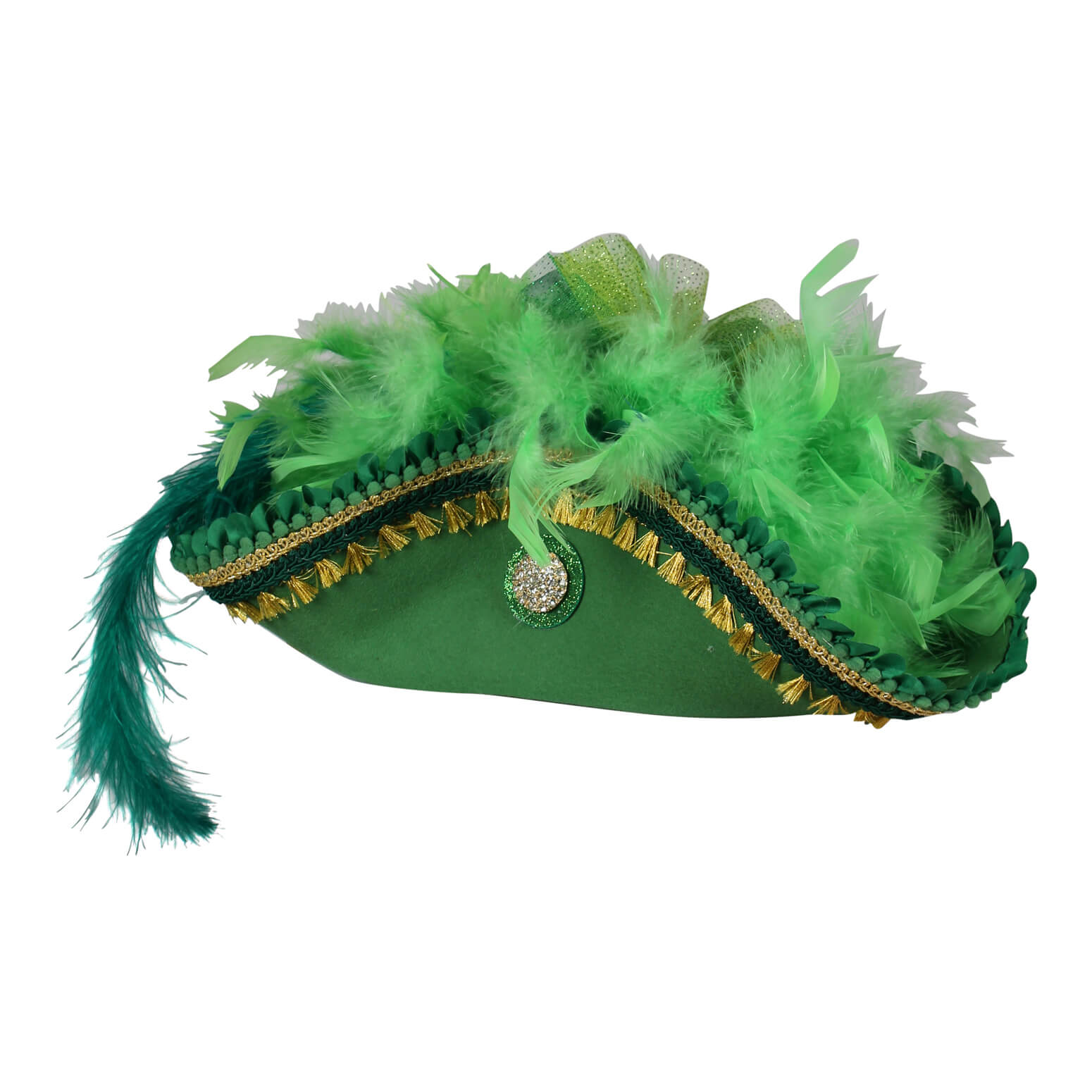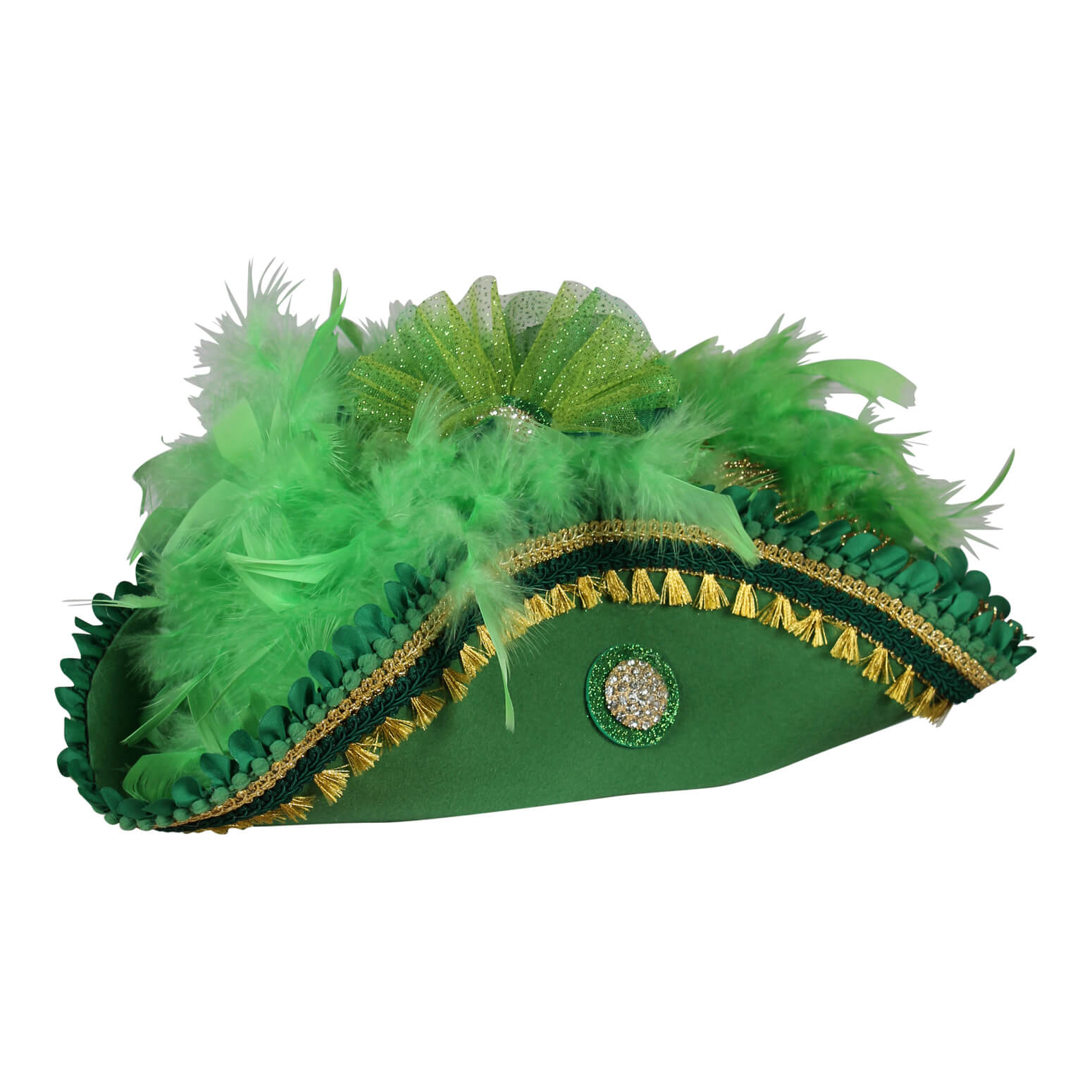 Edelleute / Piraten Dreispitzhut Gardehut mit Federn und Applicationen PREMIUM CLASS grün-gold