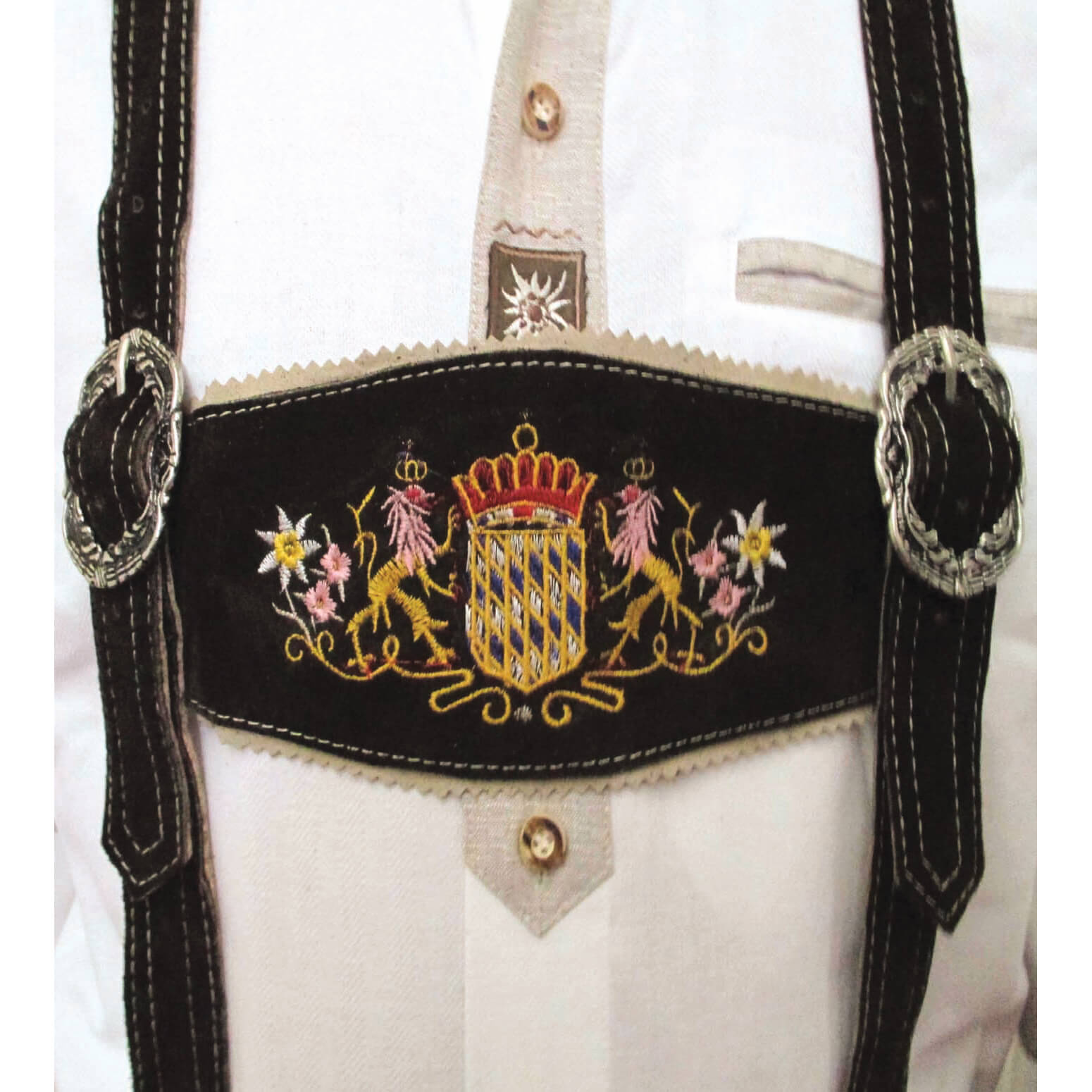 Trachten Motivhosenträger H-Träger aus Rindsleder verstellbar dunkelbraun-bunt