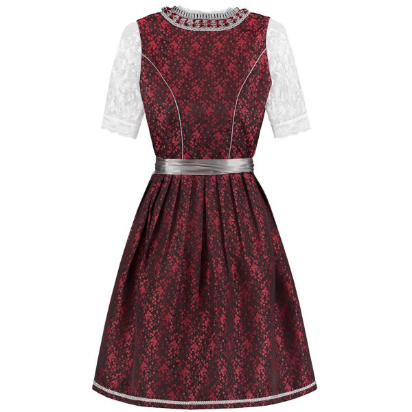 Trachten Kleidung Dirndl Kleid kurz aus Jaquard mit Schürze Froschgoscherl STAR COLLECTION rot-silber – (ARTIKEL/REFERNZ: 8719956263170/HH295536-8719956263187/HH295538-8719956263200/HH295542-8719956263217/HH295544-8719956263224/HH295546-8719956263255/HH295552 – Kategorie/Suche: Oktoberfest – Hersteller: Haus Huberts V.O.F.)