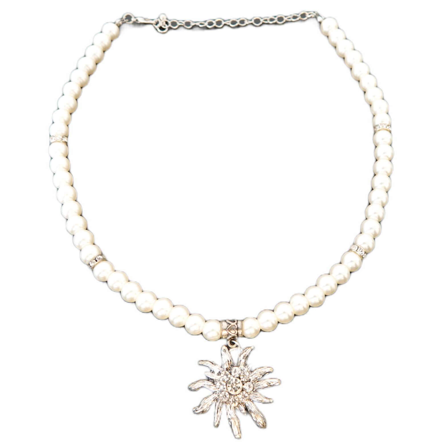 Trachten Perlenkette mit Edelweiß Anhänger Deluxe creme-silber