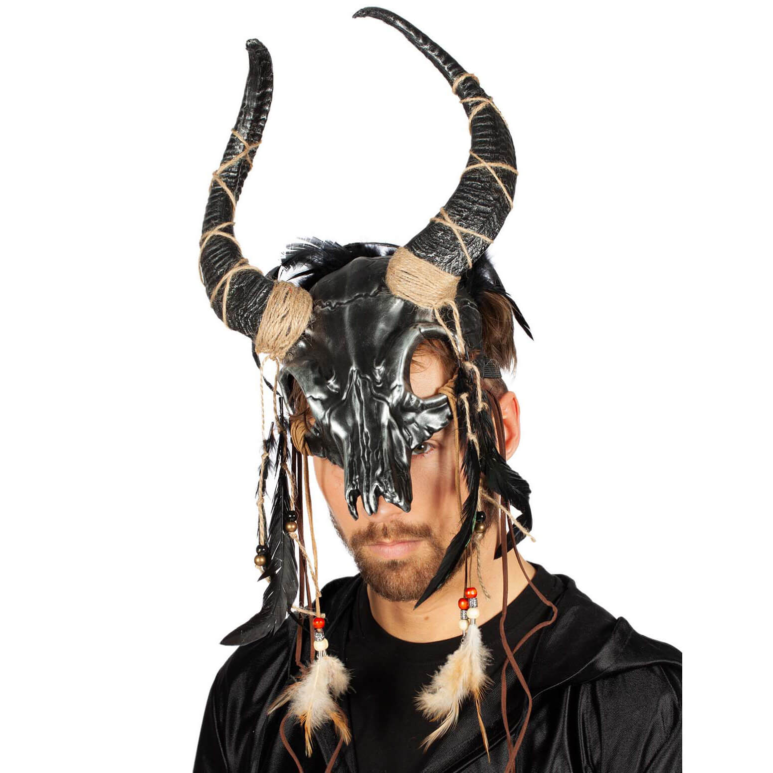 Voodoo Priester Priesterin Stirnmaske mit Hörnern metallic schwarzer Schädel auch für Medizinmann schwarz – (ARTIKEL/REFERNZ: 8720059012978/WB41617BK – Kategorie/Suche: – Hersteller: Wilbers & Wilbers)