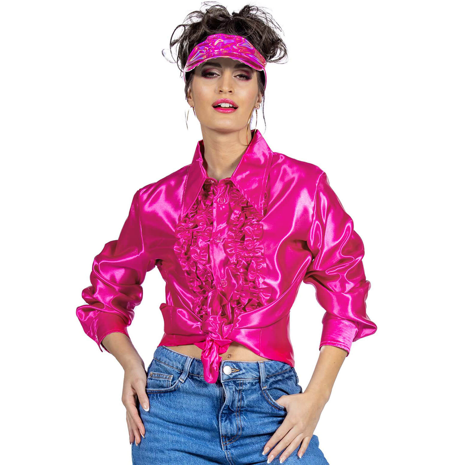 Show Disco Rüschenhemd Rüschenbluse Satin Deluxe pink
