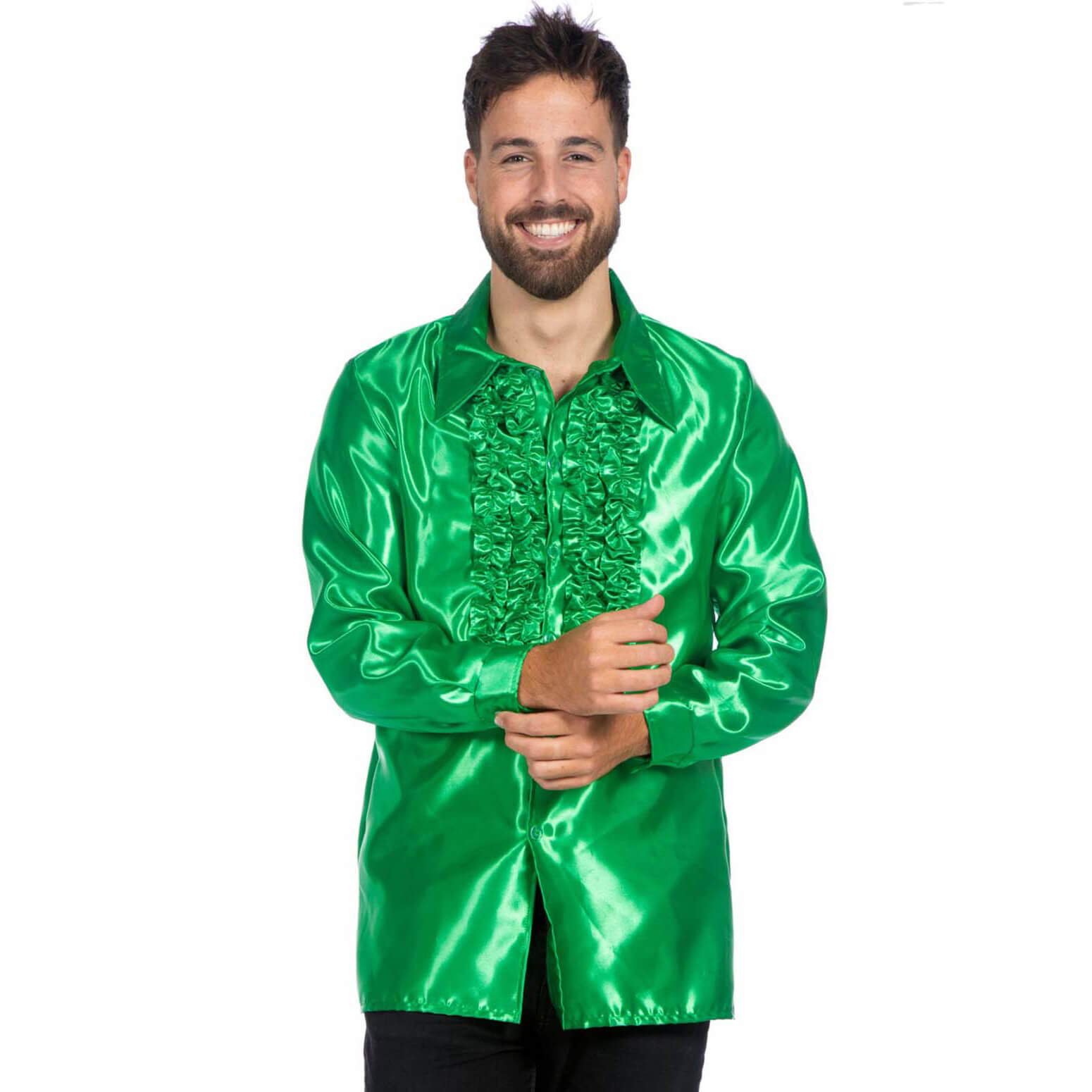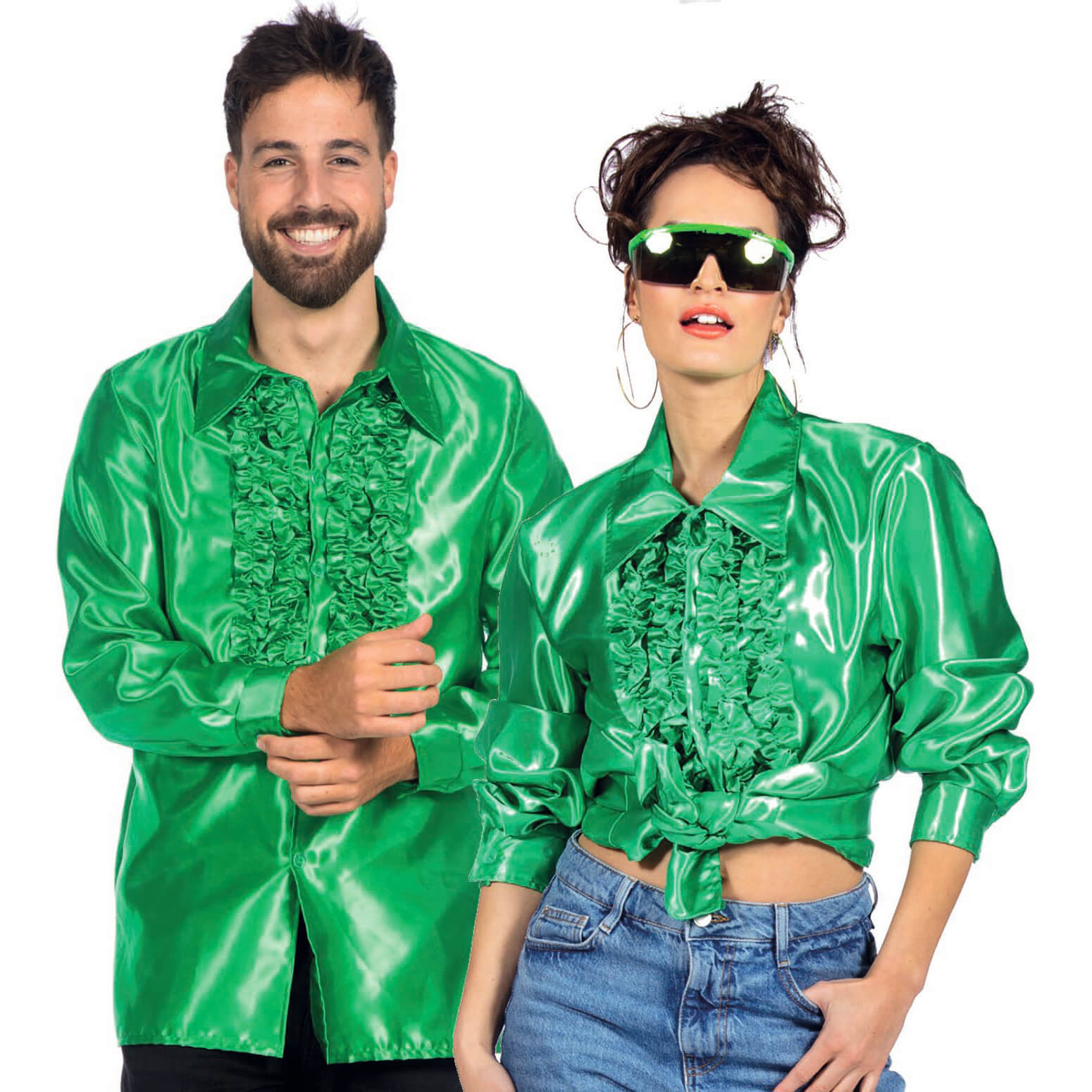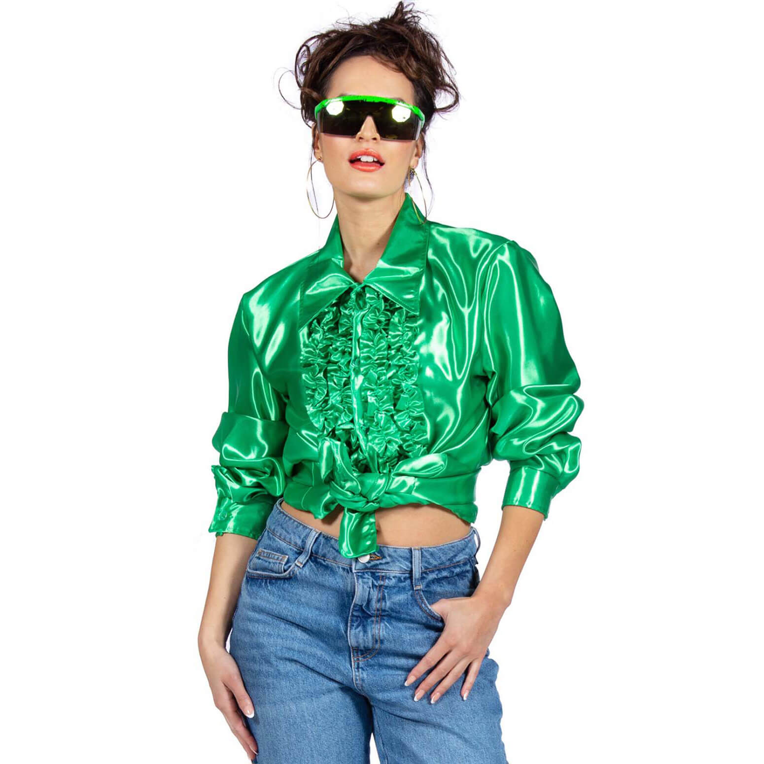 Show Disco Rüschenhemd Rüschenbluse Satin Deluxe grün