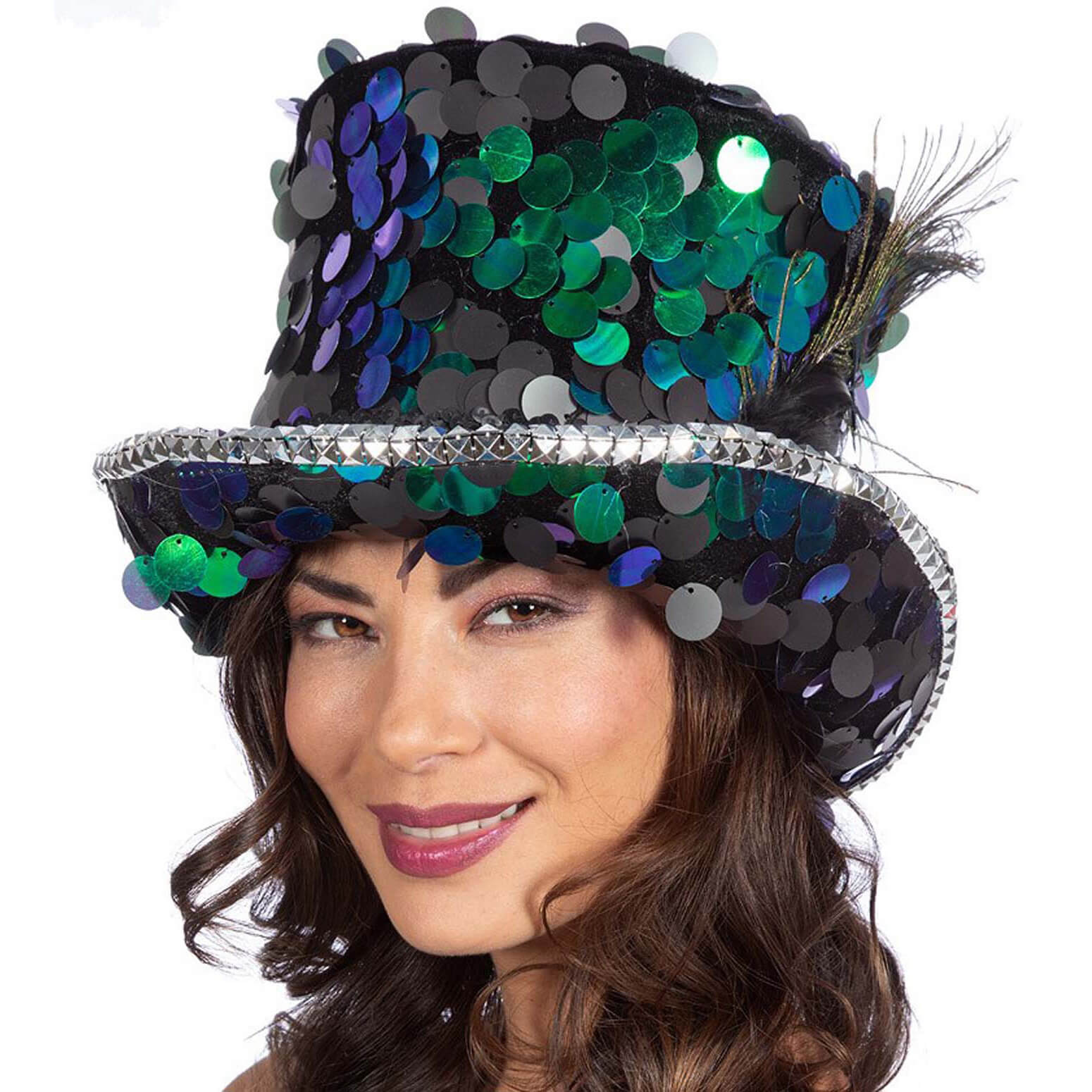 Show/Saloon Zylinderhut mit Paillette Superdeluxe mit Pfauenfeder lila-grün – (ARTIKEL/REFERNZ: 8720059028528/WB9681BK – Kategorie/Suche: – Hersteller: Wilbers & Wilbers)