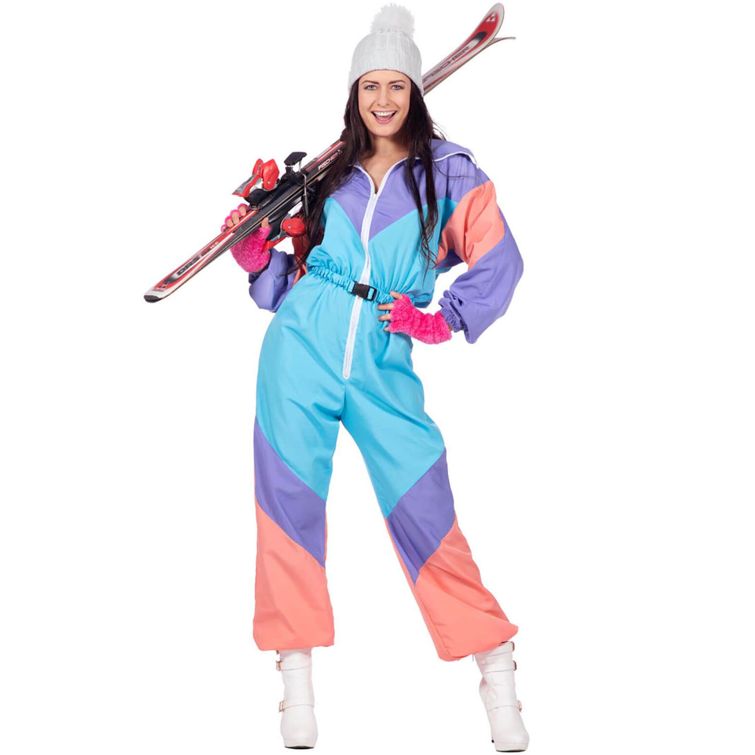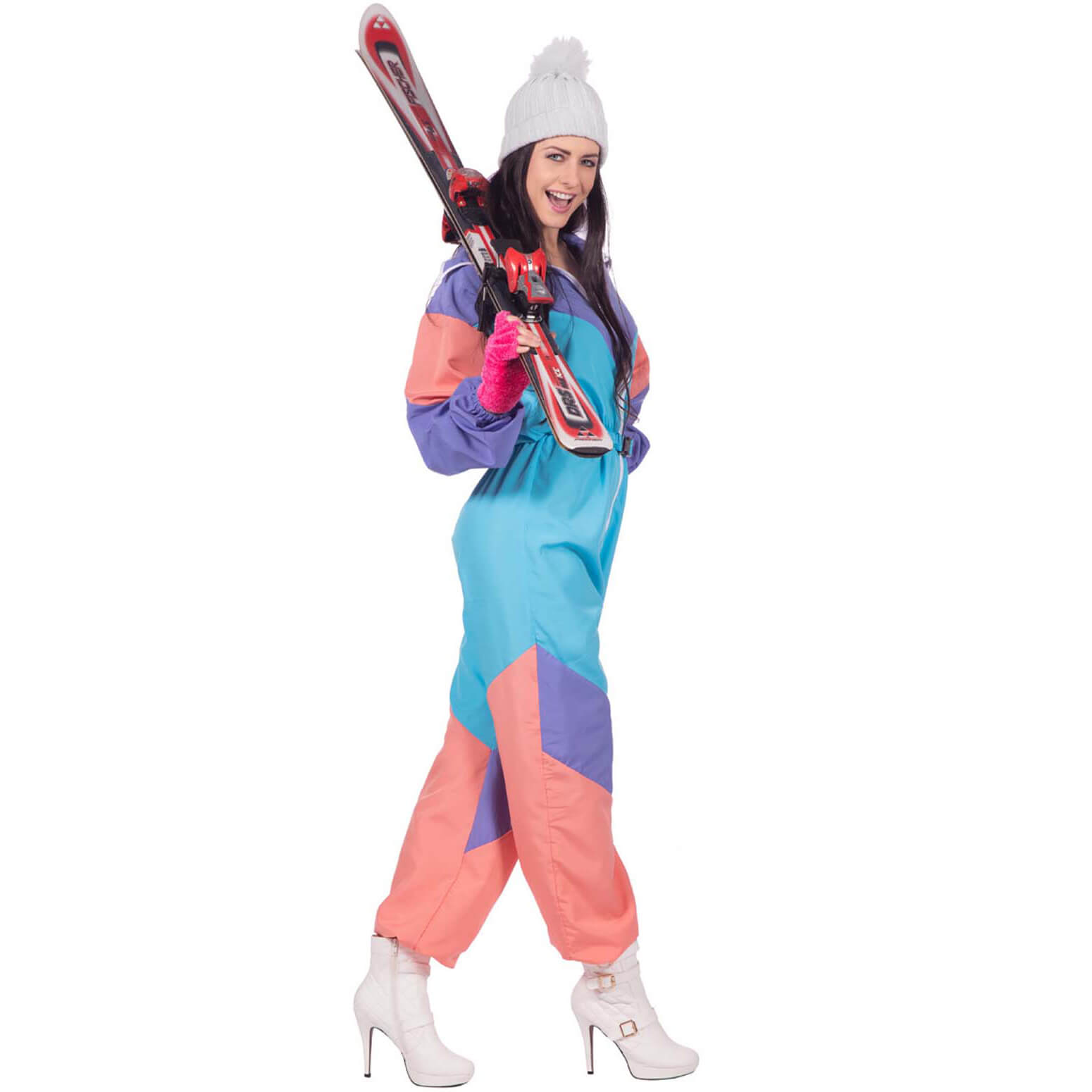 80er Jahre Skianzug Kostüm Overall Retro Ski Dame türkis-orange