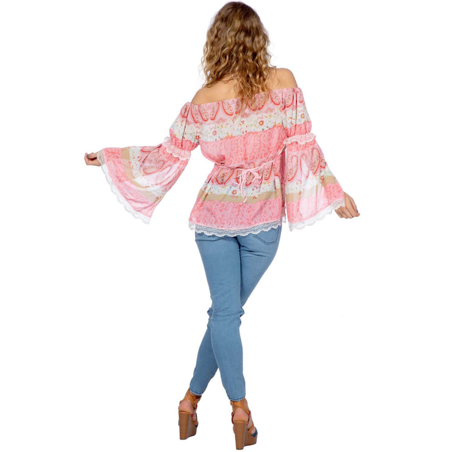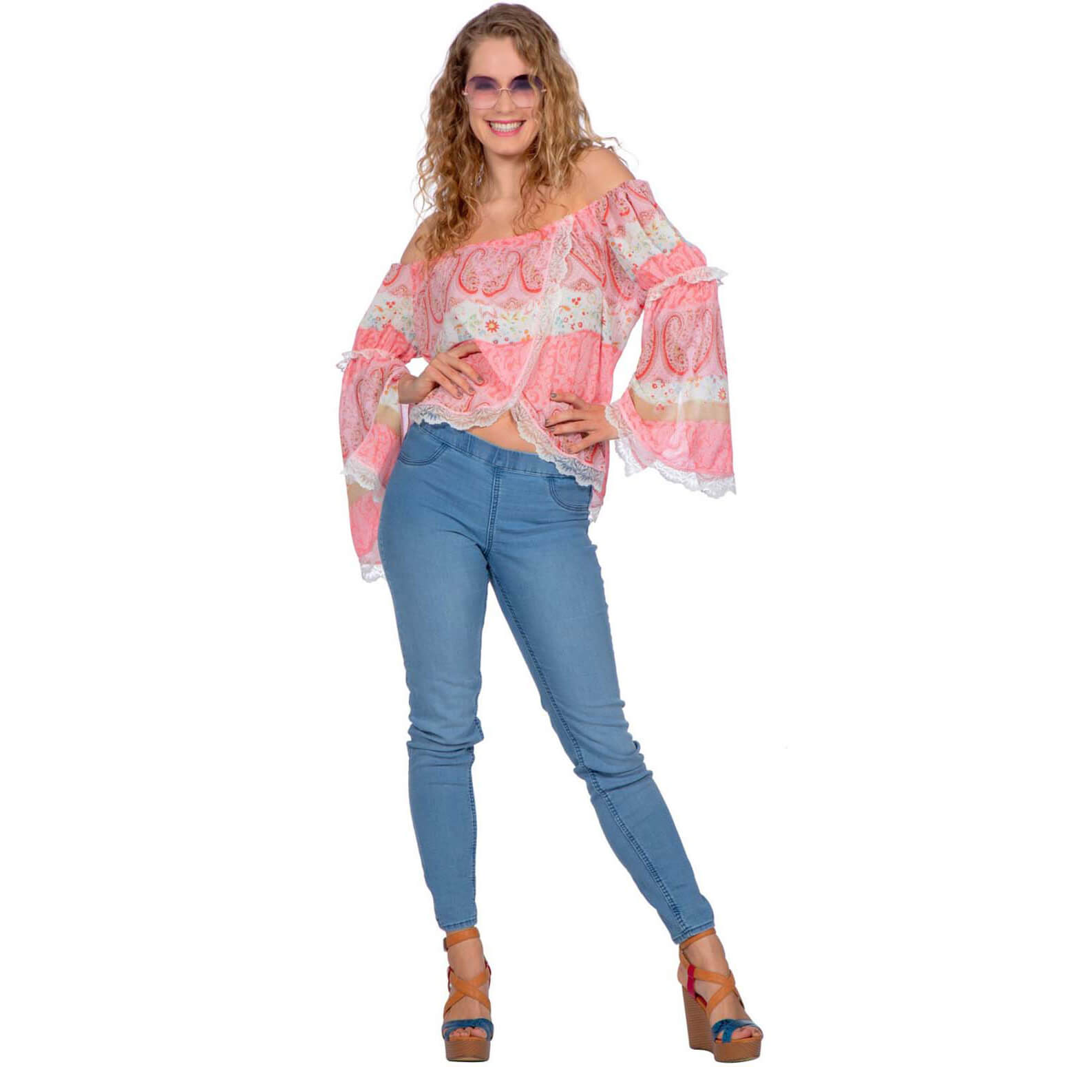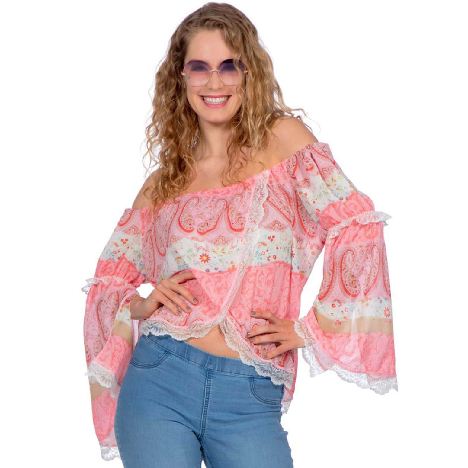 70er Jahre Hippiegirl Shirt Langarmshirt Festival mit Spitze rosa – (ARTIKEL/REFERNZ: 8720059036899/WB4459S-8720059036929/WB4459XL – Kategorie/Suche: – Hersteller: Wilbers & Wilbers)