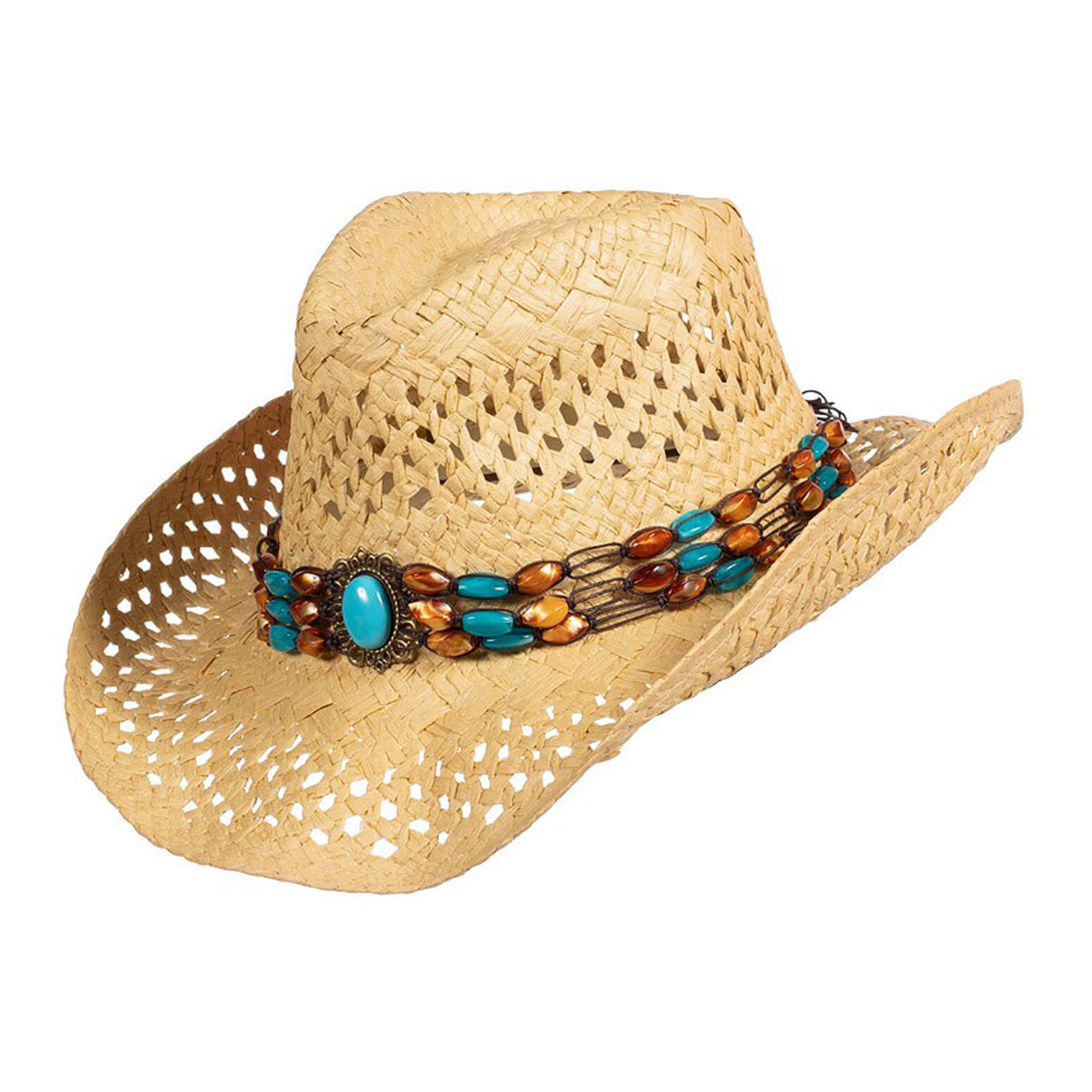Cowgirl Cowboy/Festival Strohhut Cowboyhut durchbrochen mit Perlen und Steinen beige-türkis – (ARTIKEL/REFERNZ: 8720059037001/WB9820BG – Kategorie/Suche: – Hersteller: Wilbers & Wilbers)