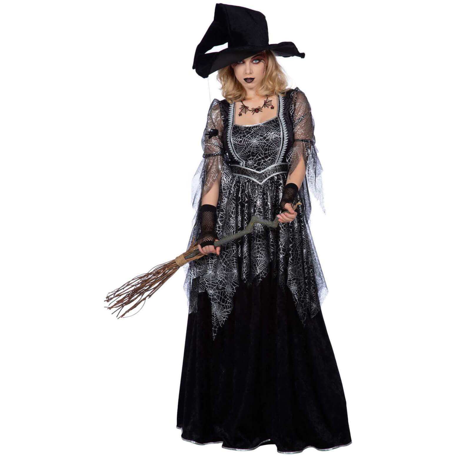 Hexe Kostüm Kleid lang mit metallic Spinnennetzmuster schwarz-silber – (ARTIKEL/REFERNZ: 8720059040469/WB435936-8720059040476/WB435938-8720059040483/WB435940-8720059040490/WB435942-8720059040506/WB435944-8720059040513/WB435946-8720059040520/WB435948 – Kategorie/Suche: – Hersteller: Wilbers & Wilbers)