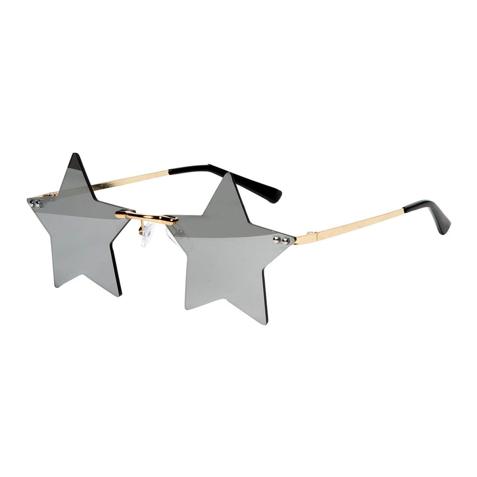 80er Jahre / Stern Motivbrille verspiegelt schwarz-gold