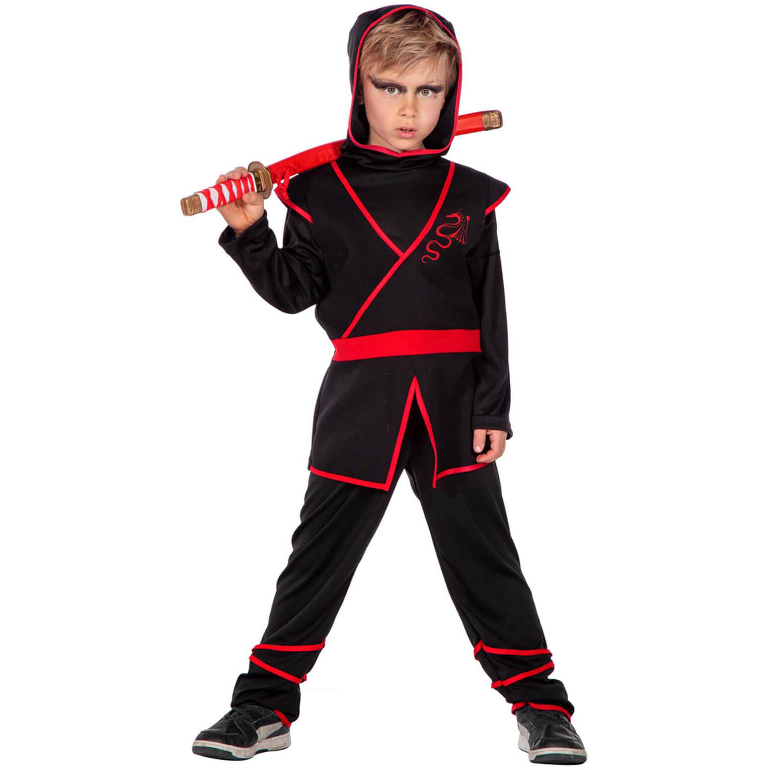 Ninja Kinderkostüm Anzug mit rotem Drachen schwarz-rot – (ARTIKEL/REFERNZ: 8720059049431/WB3304104-8720059049448/WB3304116-8720059049455/WB3304128-8720059049462/WB3304140-8720059049479/WB3304152 – Kategorie/Suche: – Hersteller: Wilbers & Wilbers)
