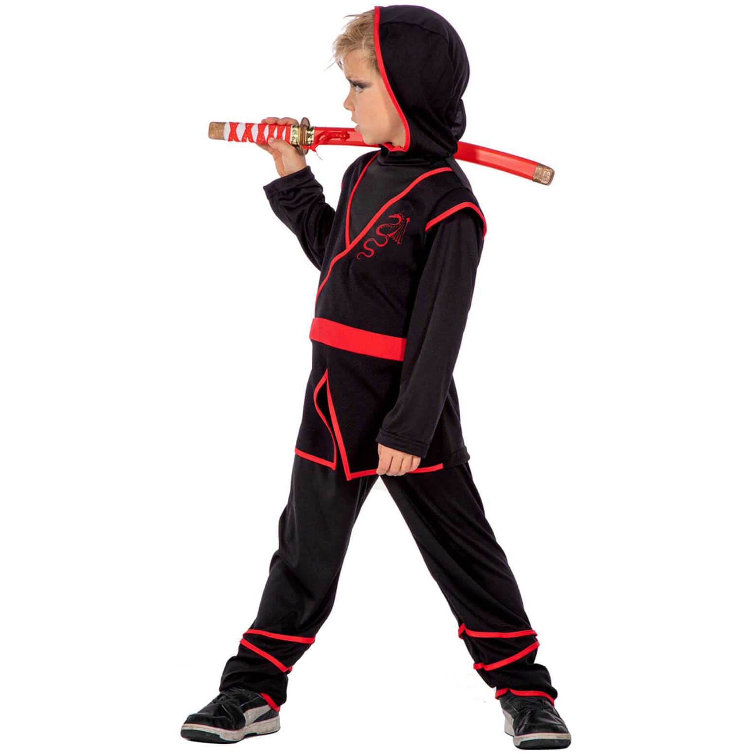 Ninja Kinderkostüm Anzug mit rotem Drachen schwarz-rot