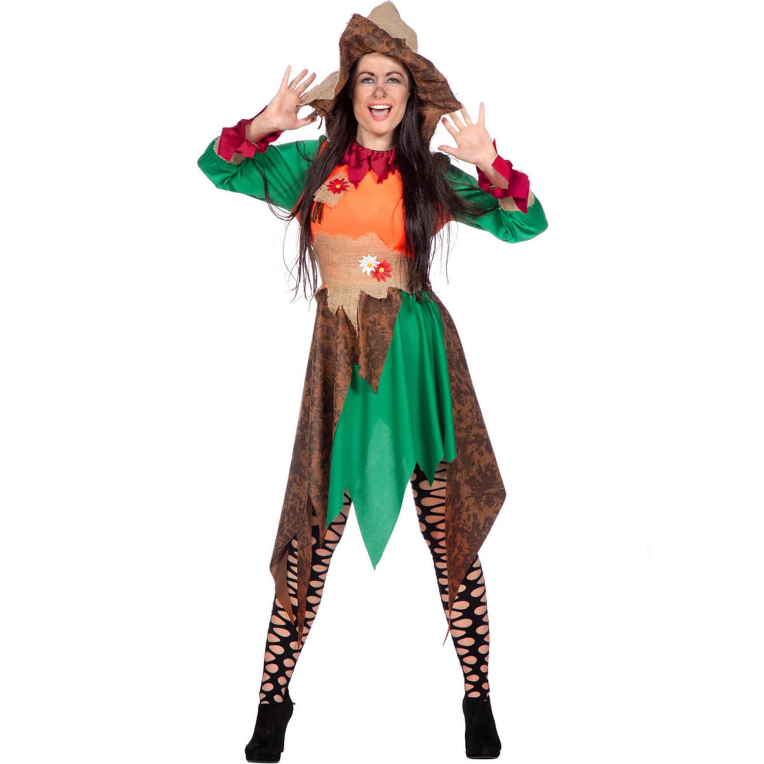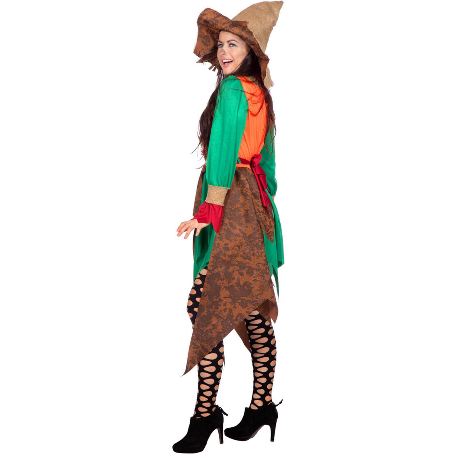 Vogelscheuche / Hexe Kostüm Kleid halblang Deluxe mit Jute grün-orange