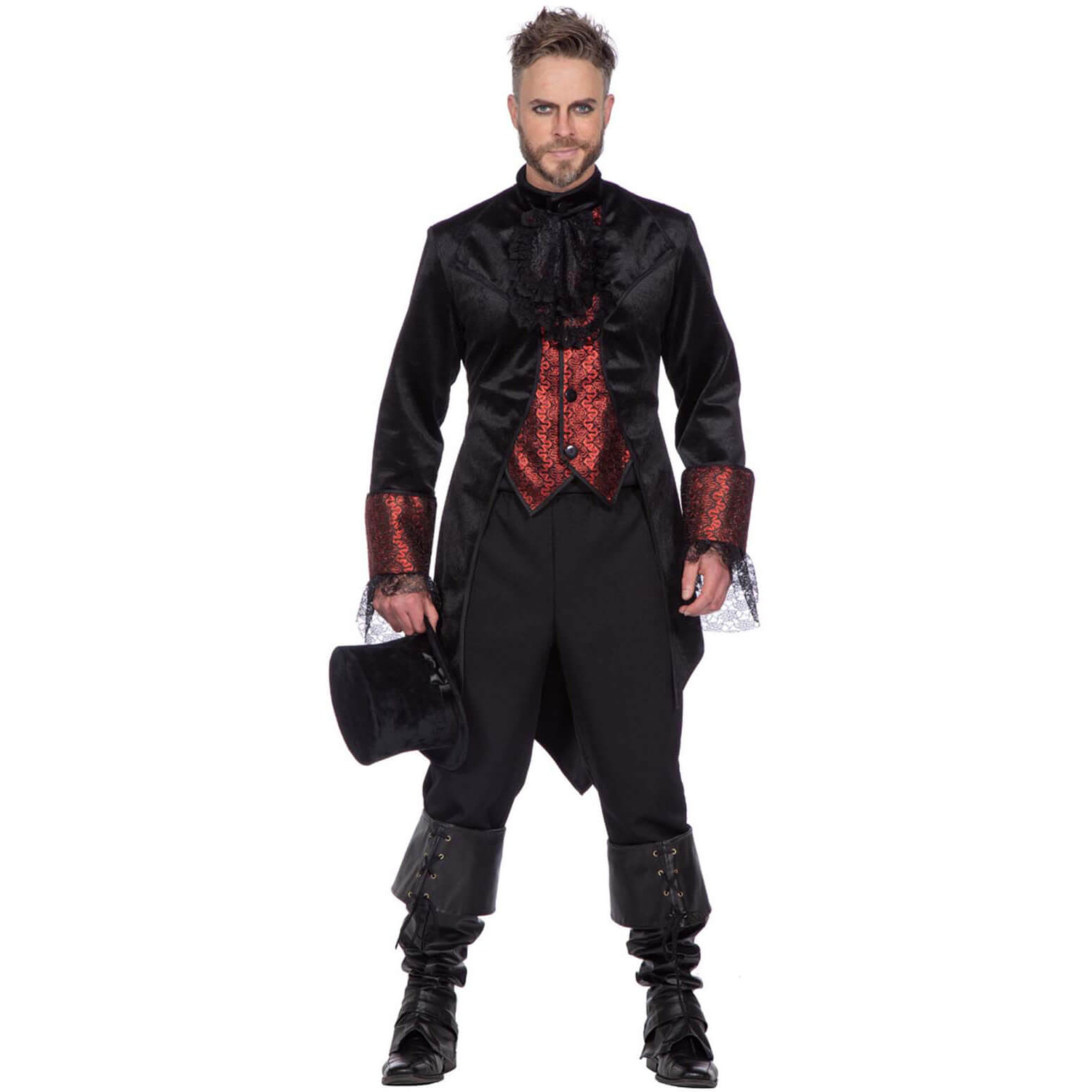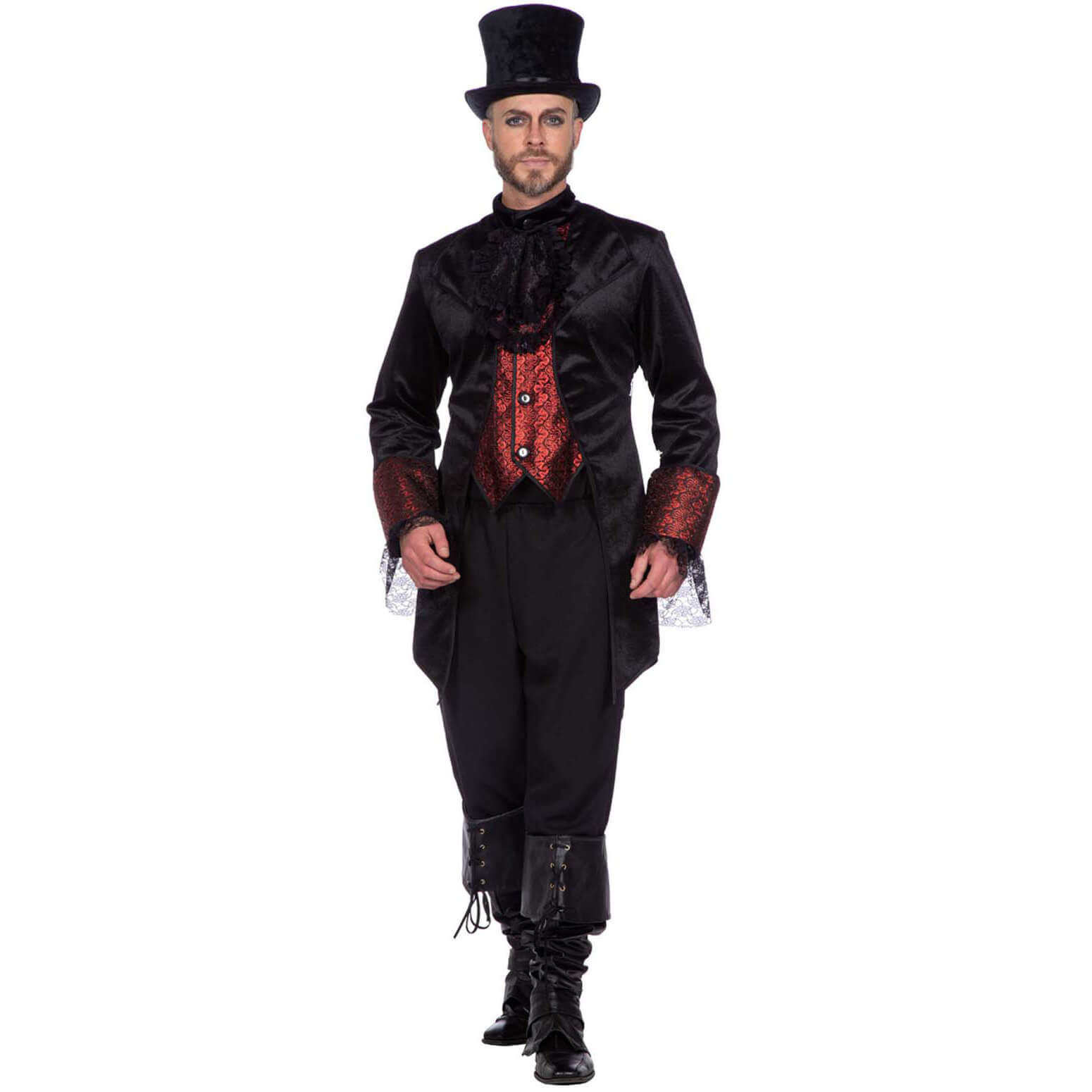Vampir / Edelherr Gothic Kostüm Mantel aus Samt Deluxe schwarz-rot