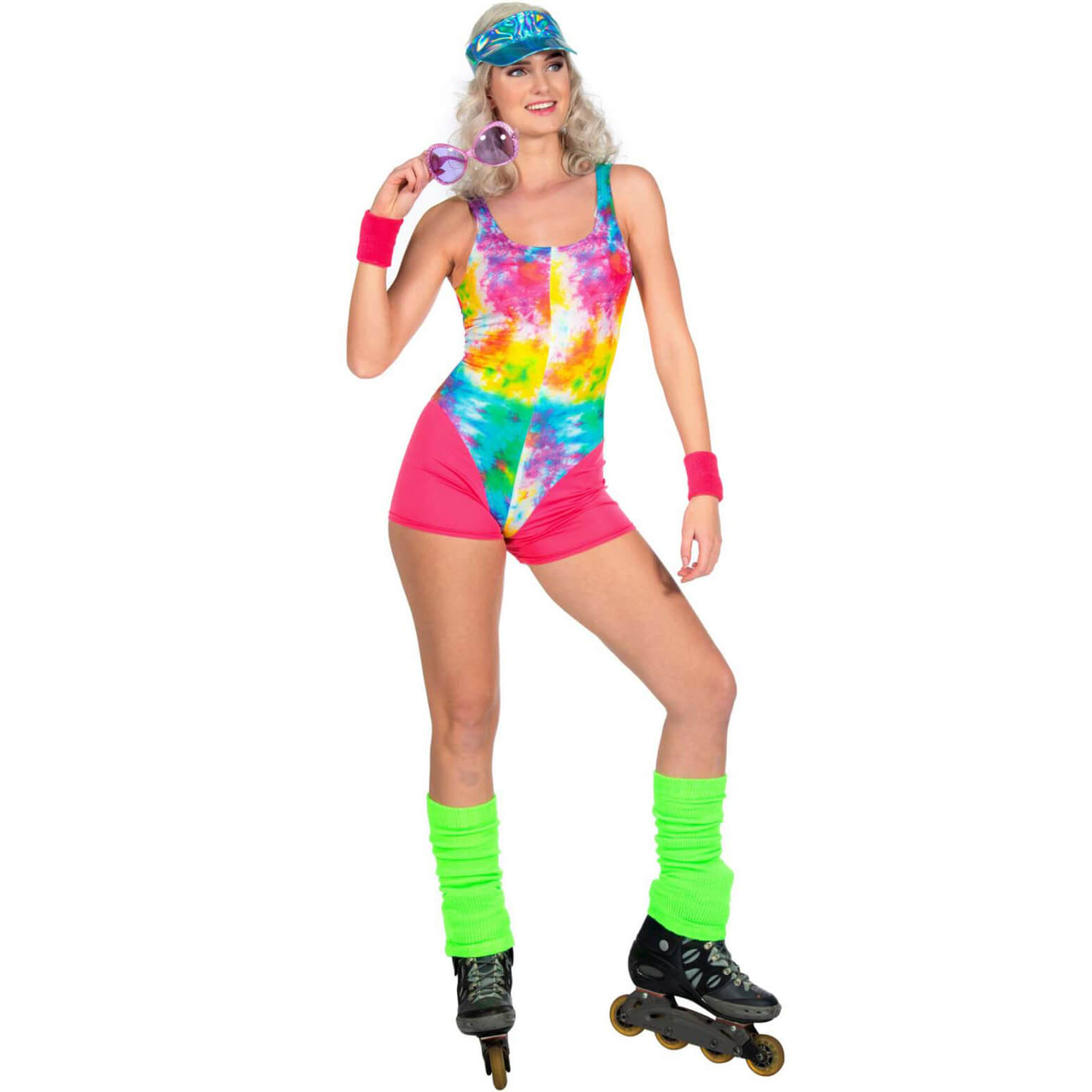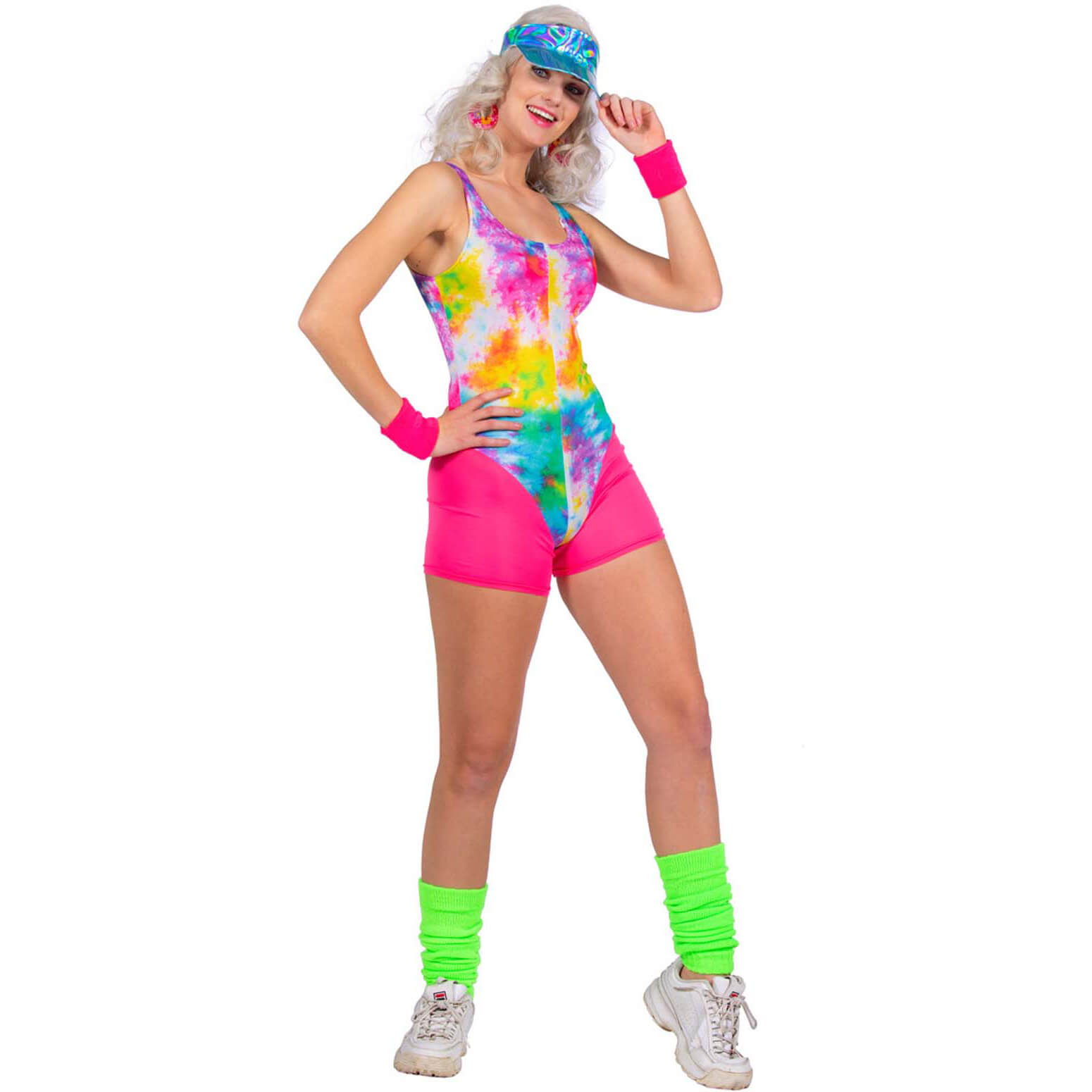 80er Jahre Aerobictrainerin Kostüm Anzug kurz Aerobic Babe Neon mit Body neonbunt