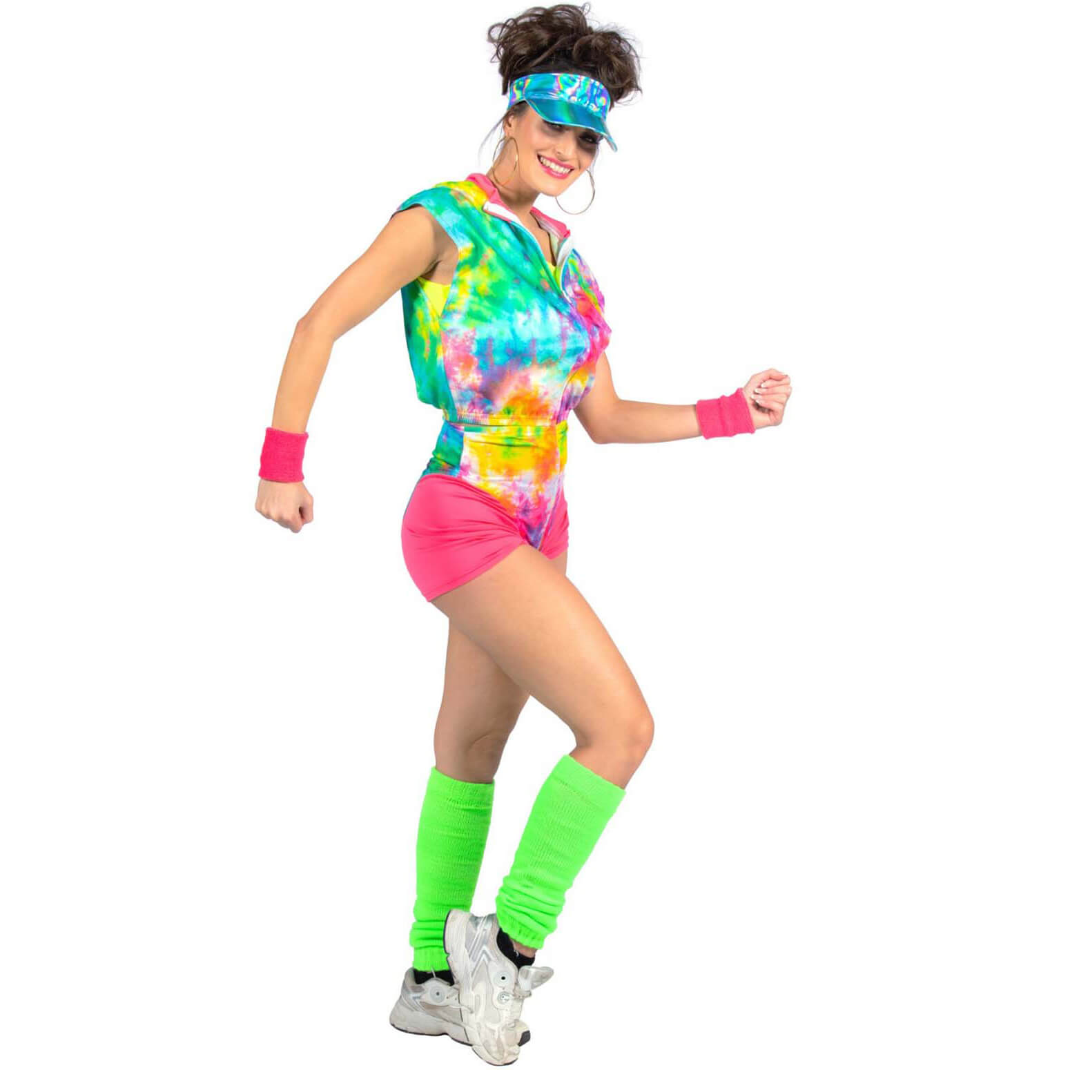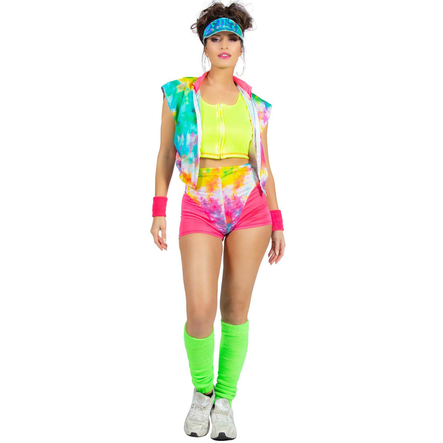 80er Jahre Aerobictrainerin Kostüm Anzug kurz Aerobic Babe Neon mit Shorts und Jacke neonbunt