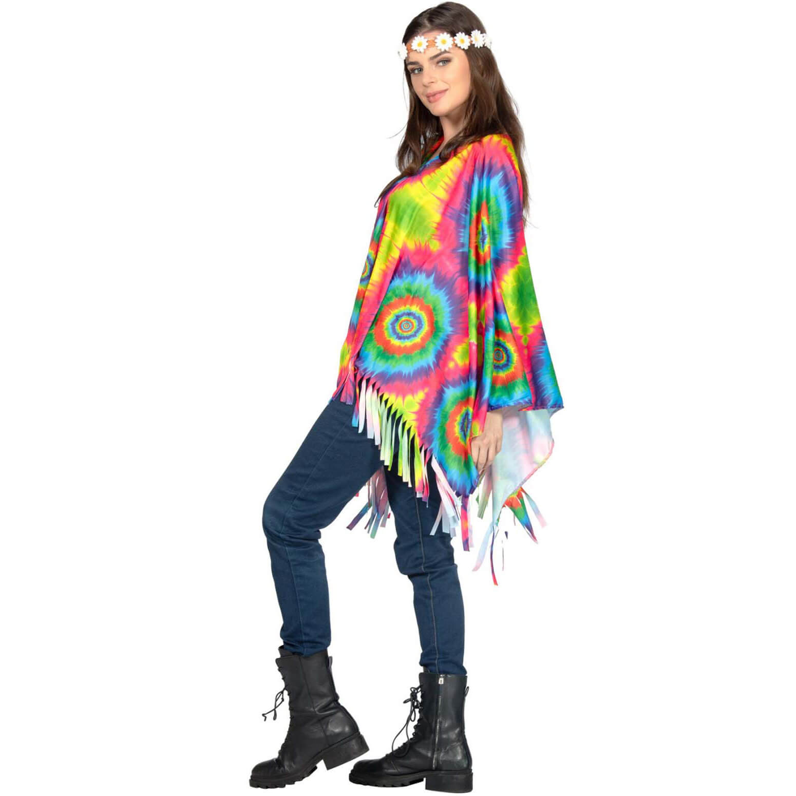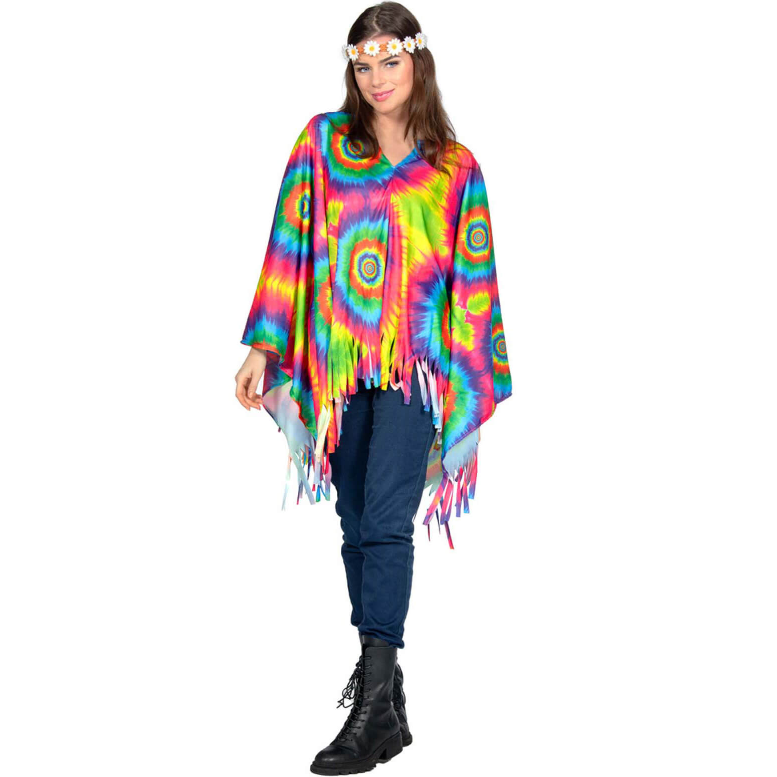 70er Jahre Hippie Psychedelic Kostüm Poncho Überwurf Deluxe bunt