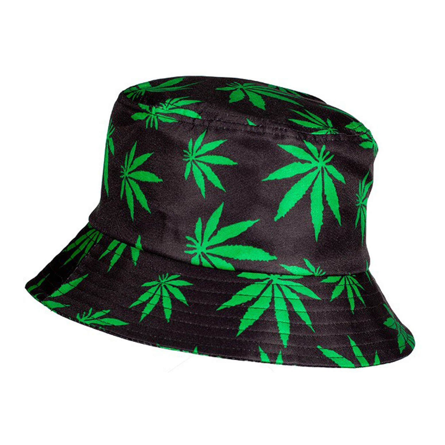 Cannabis Hanfblätter Eimerhut Fischerhut schwarz-grün