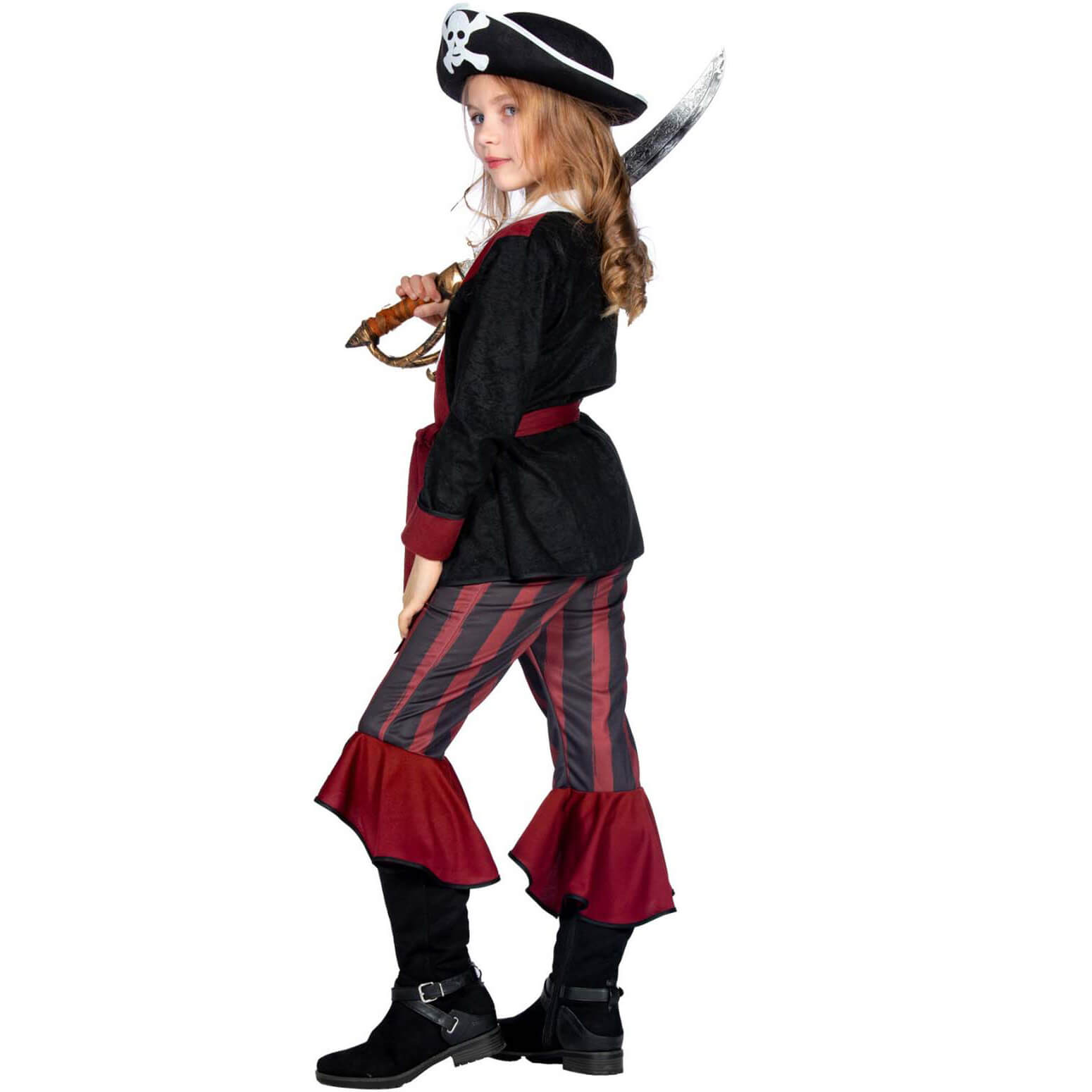 Piratin Kinderkostüm Anzug Weinrote Piratin dunkelrot-schwarz