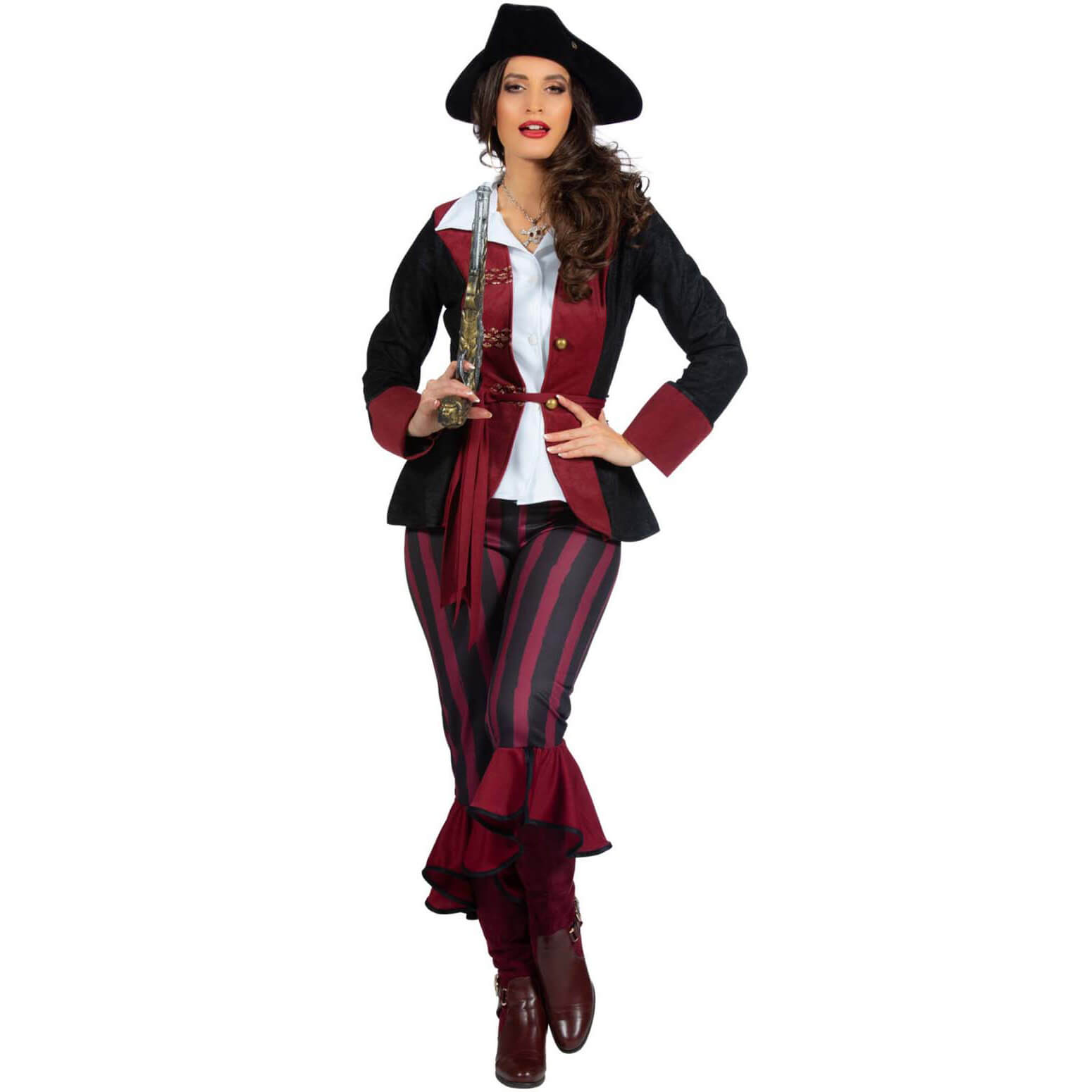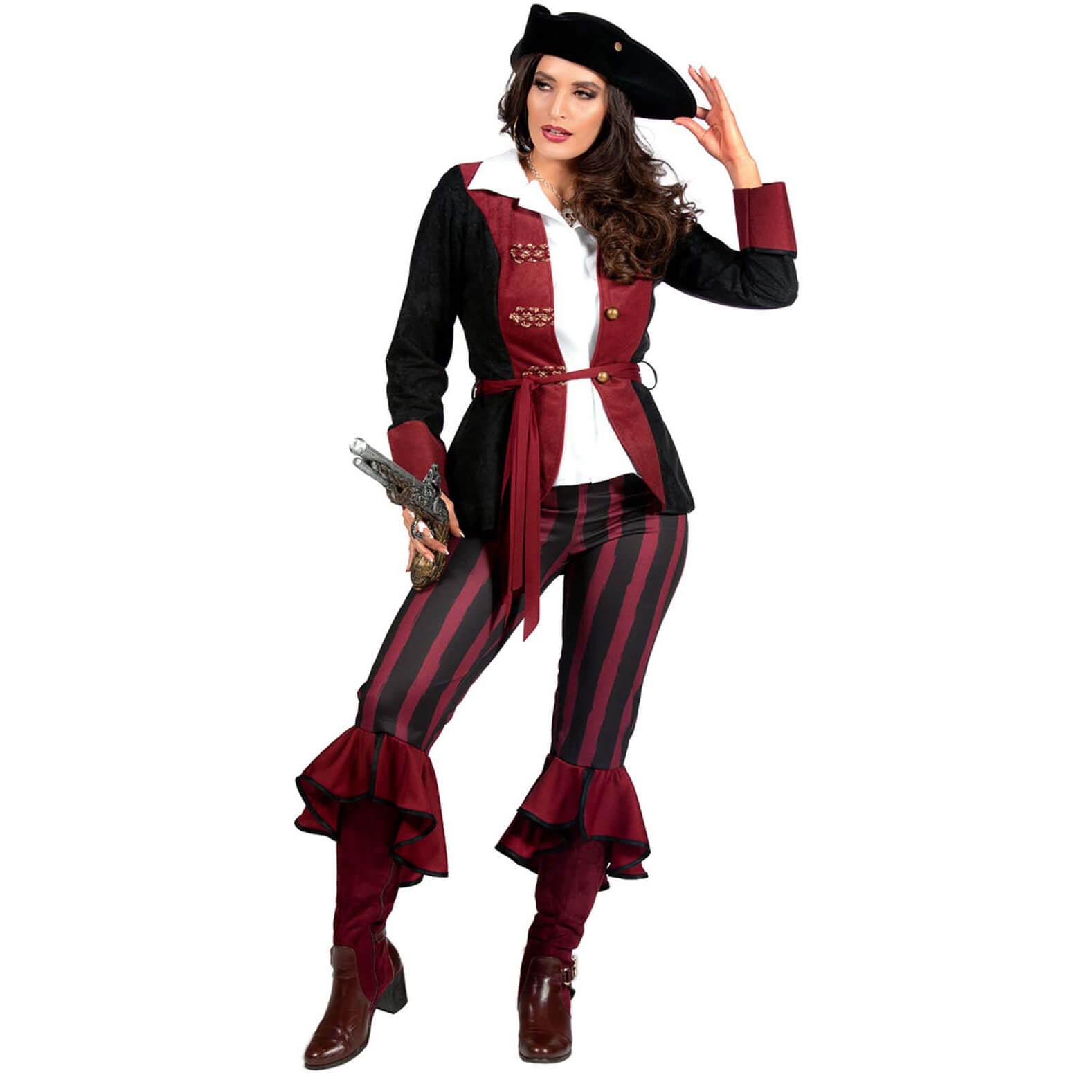Piratin Kostüm Anzug Weinrote Piratin dunkelrot-schwarz