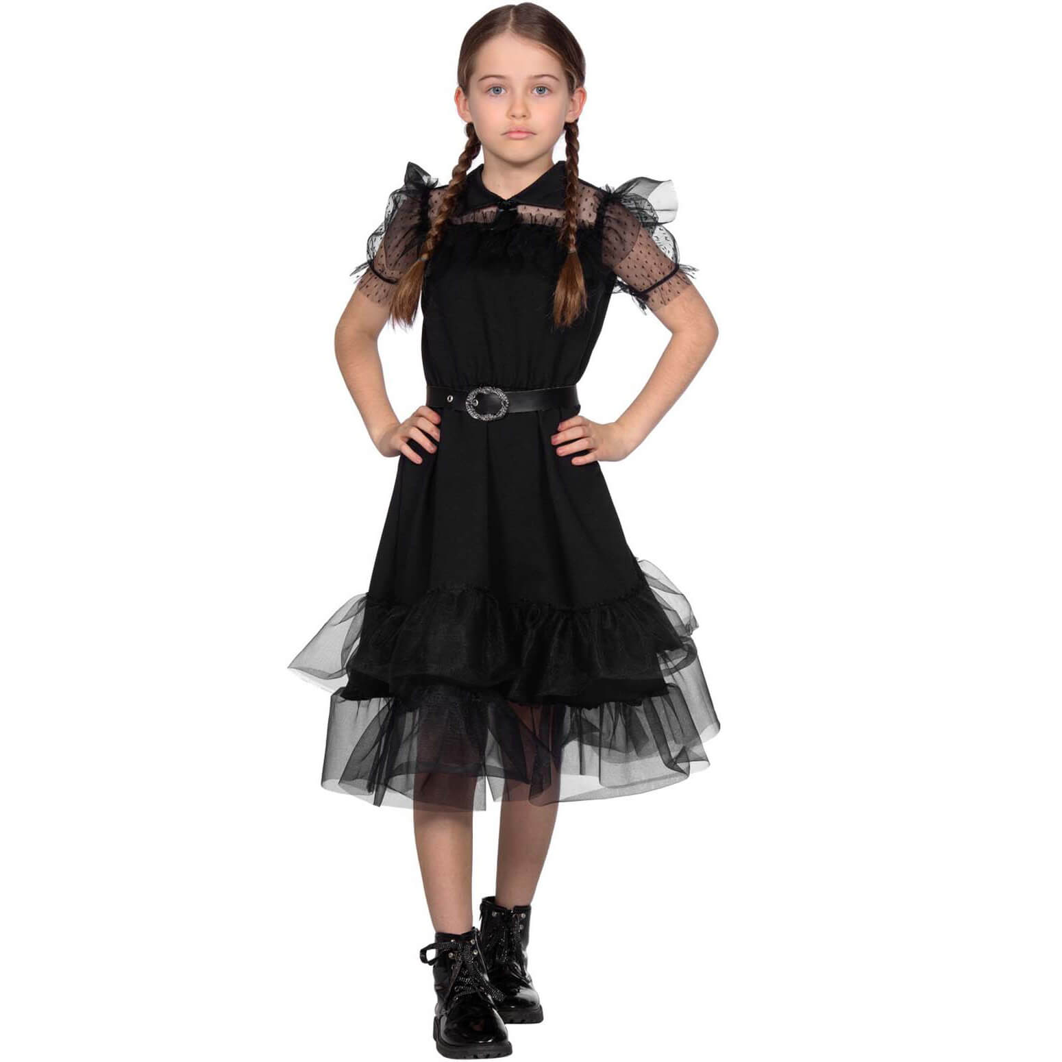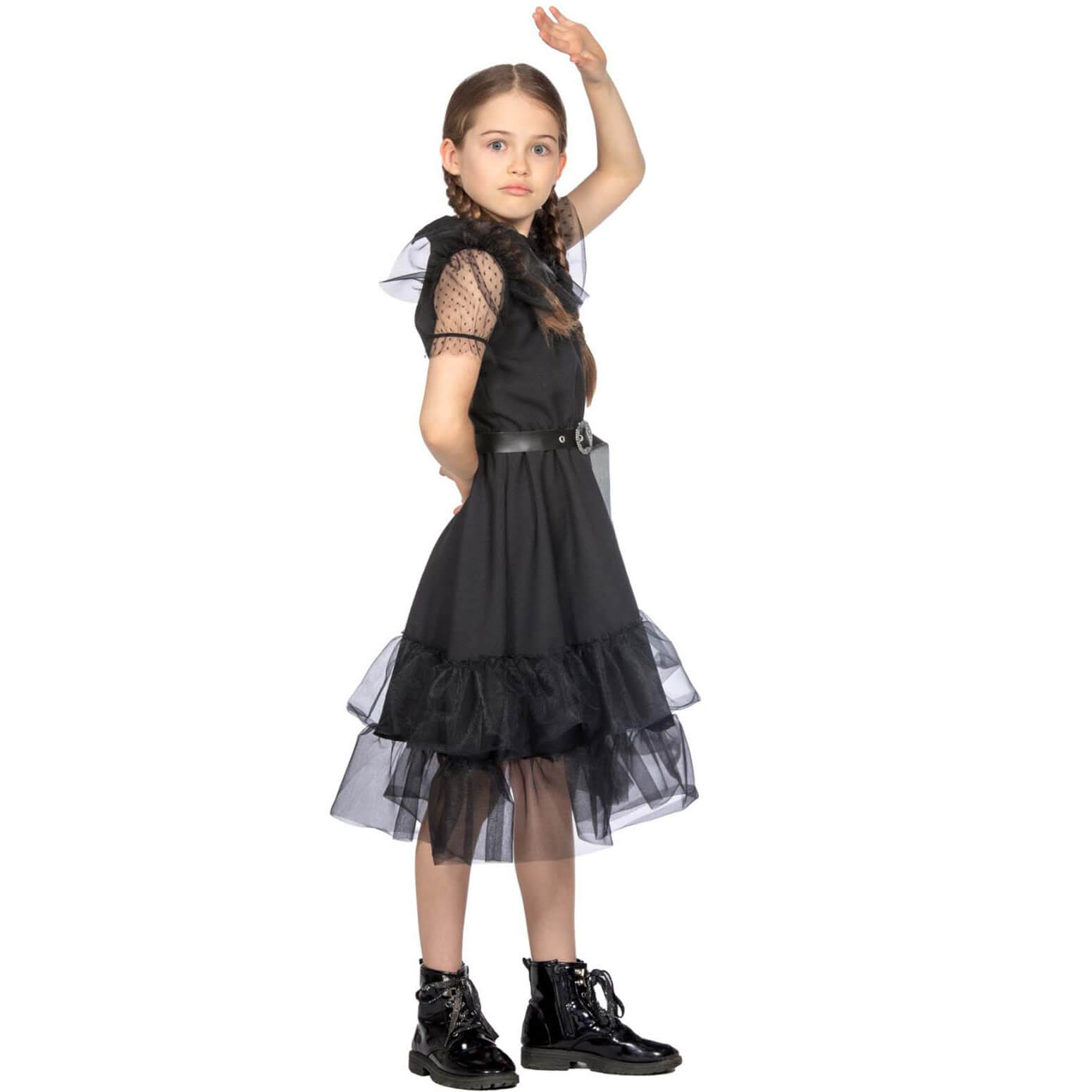 Friday/Lebendige Puppe Kinderkostüm Kleid kurz mit Tüll Ballkleid schwarz – (ARTIKEL/REFERNZ: 8720059061457/WB3829128-8720059061464/WB3829140-8720059061471/WB3829152-8720059061488/WB3829164-8720059061495/WB3829176 – Kategorie/Suche: Wednesday Addams Family Wensday – Hersteller: Wilbers & Wilbers)