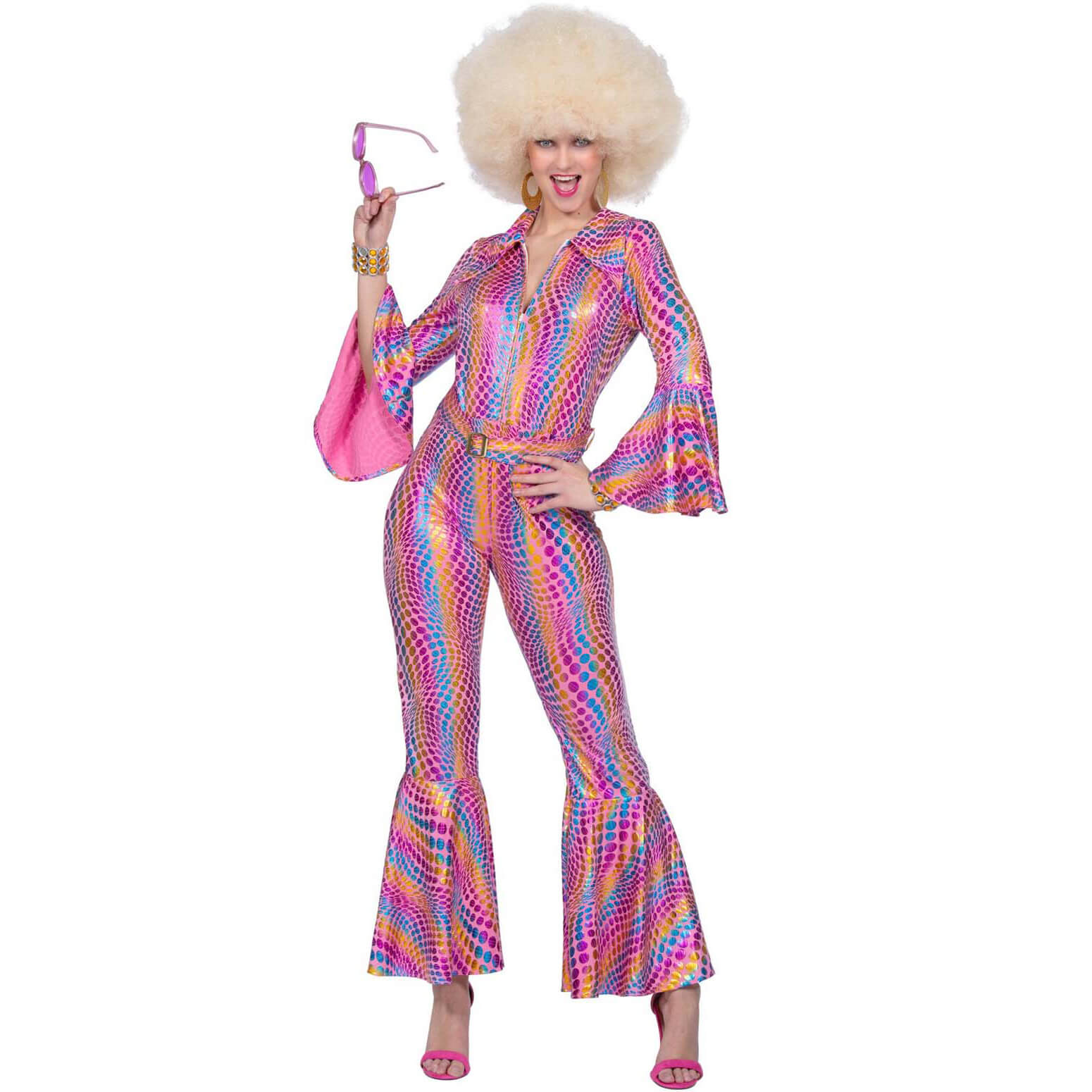 Superstars ABBA Dame Kostüm Overall metallic Disco Catsuit pink-bunt