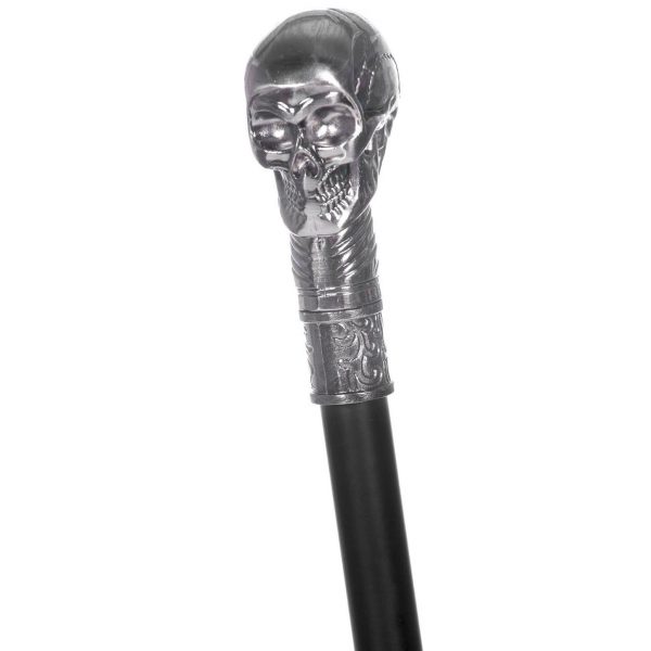 Schädel bleich Spazierstock Deluxe schwarz-silber
