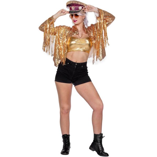 Showgirl/Festival Jacke mit Perlschnüren Pailletten Fransen gold – (ARTIKEL/REFERNZ: 8720059063932/WB4541AA-S/M-8720059063949/WB4541AA-L/XL – Kategorie/Suche: – Hersteller: Wilbers & Wilbers)