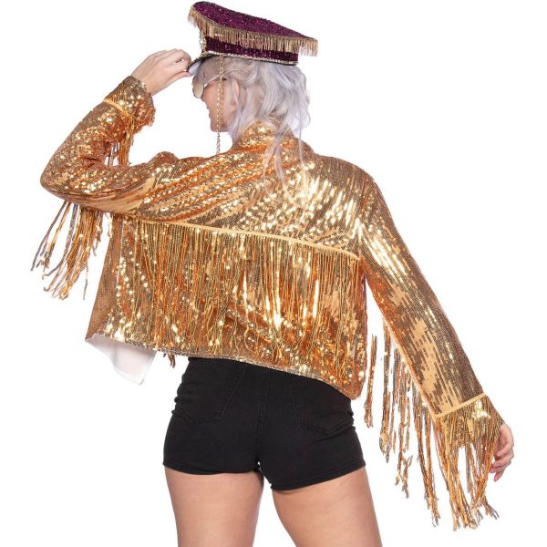 Showgirl / Festival Jacke mit Perlschnüren Pailletten Fransen gold