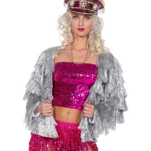 Showgirl/Festival Jacke mit Fransen Bling New Lamettajacke metallic silber – (ARTIKEL/REFERNZ: 8720059064243/WB4498SI27-XXS/XS-8720059064250/WB4498SI27-S/M-8720059064267/WB4498SI27-L/XL – Kategorie/Suche: – Hersteller: Wilbers & Wilbers)