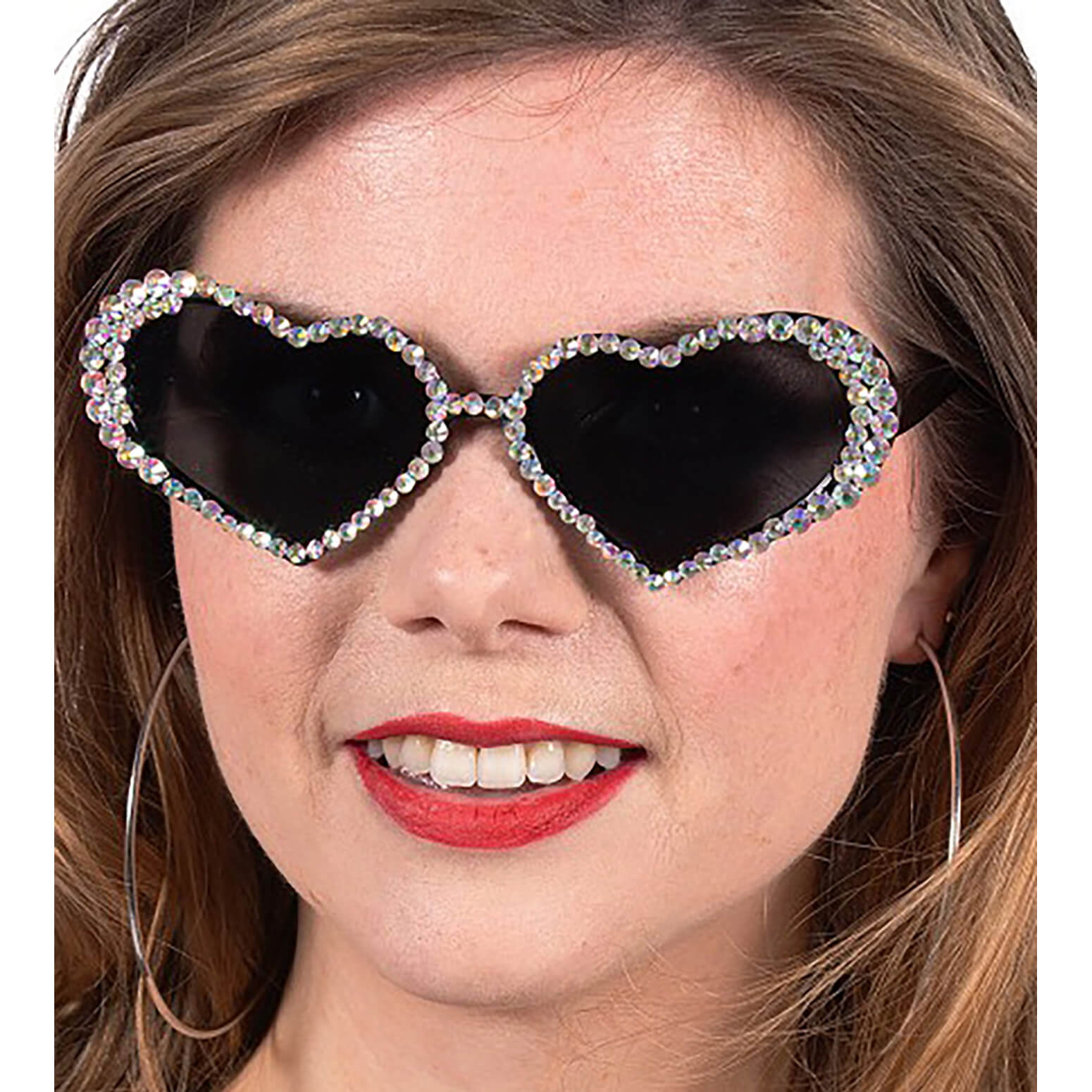 Herzen / Hippies Motivbrille mit Strass schwarz-silber
