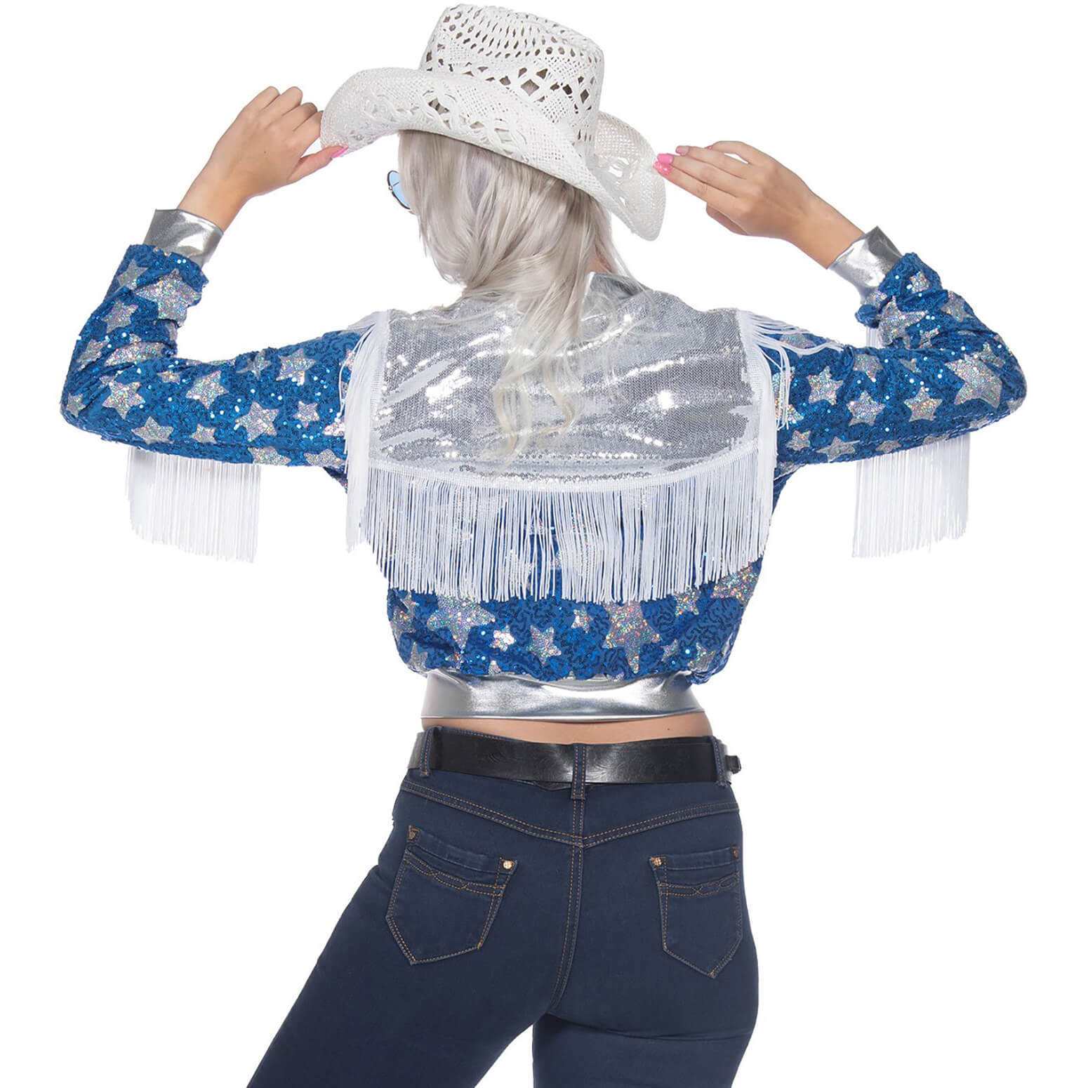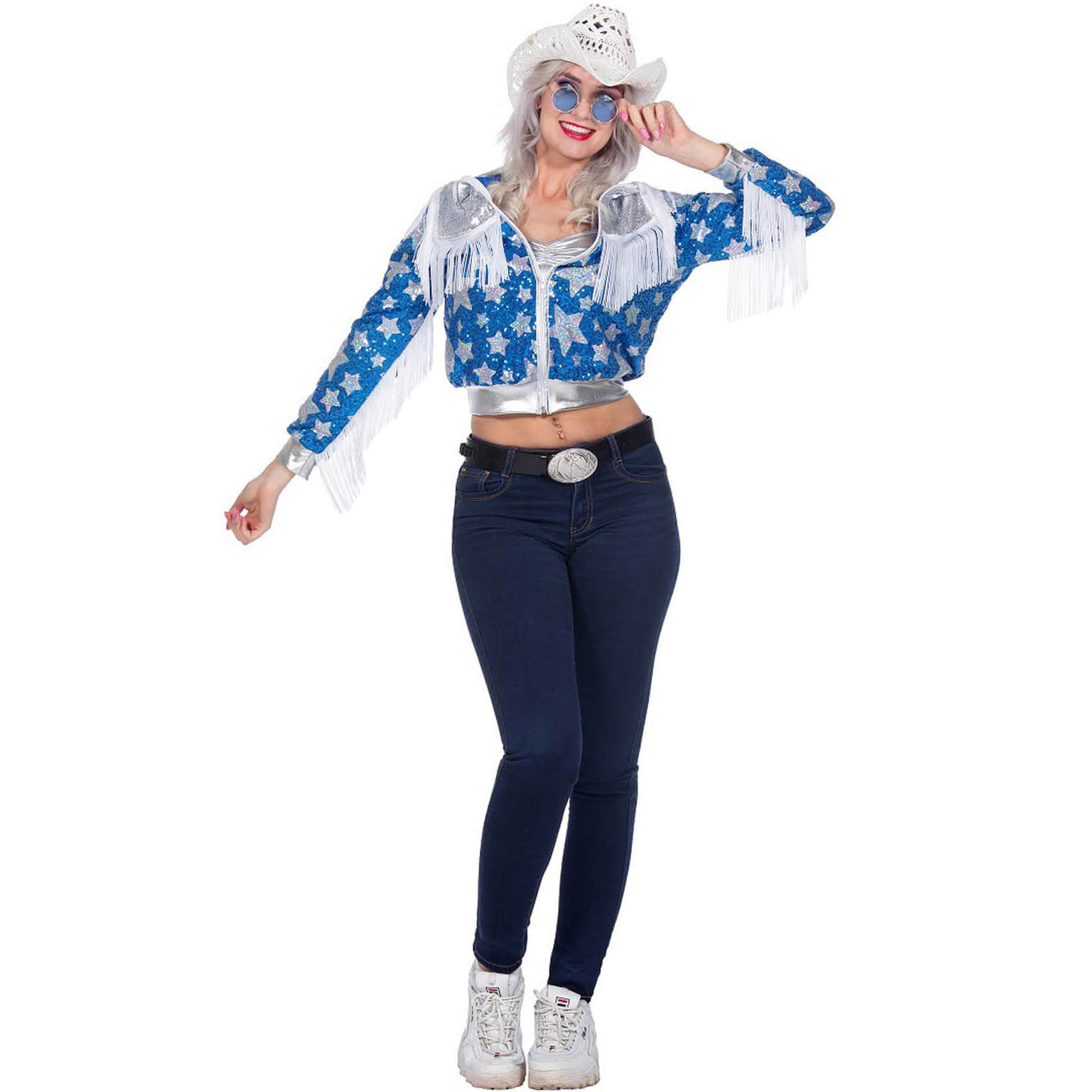 Cowgirl / Superstar mit Sternen Jacke Paillettenjacke Glamour mit Fransen blau-silber