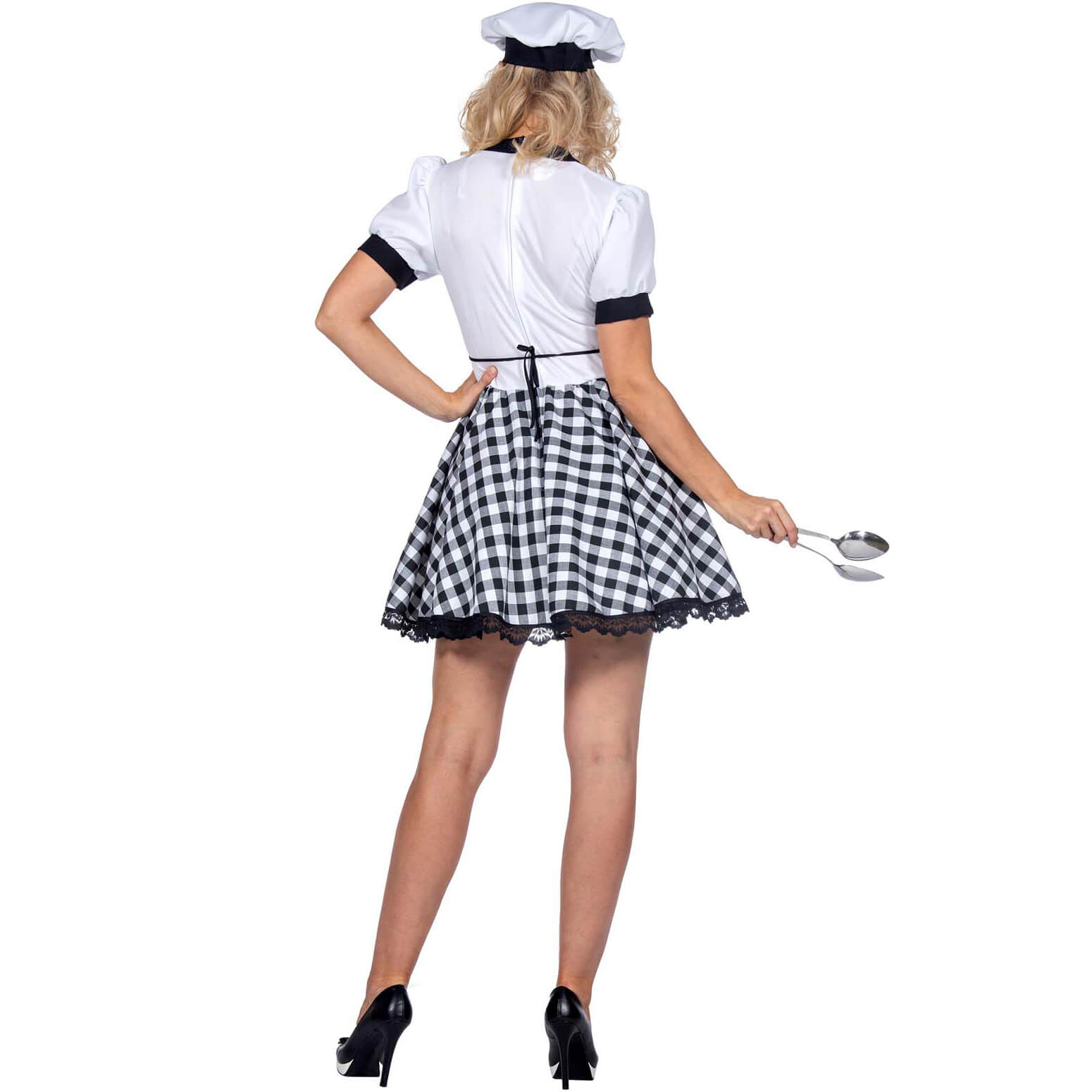 Köchin Kostüm Anzug mit Mütze und kariertem Rock weiß-schwarz