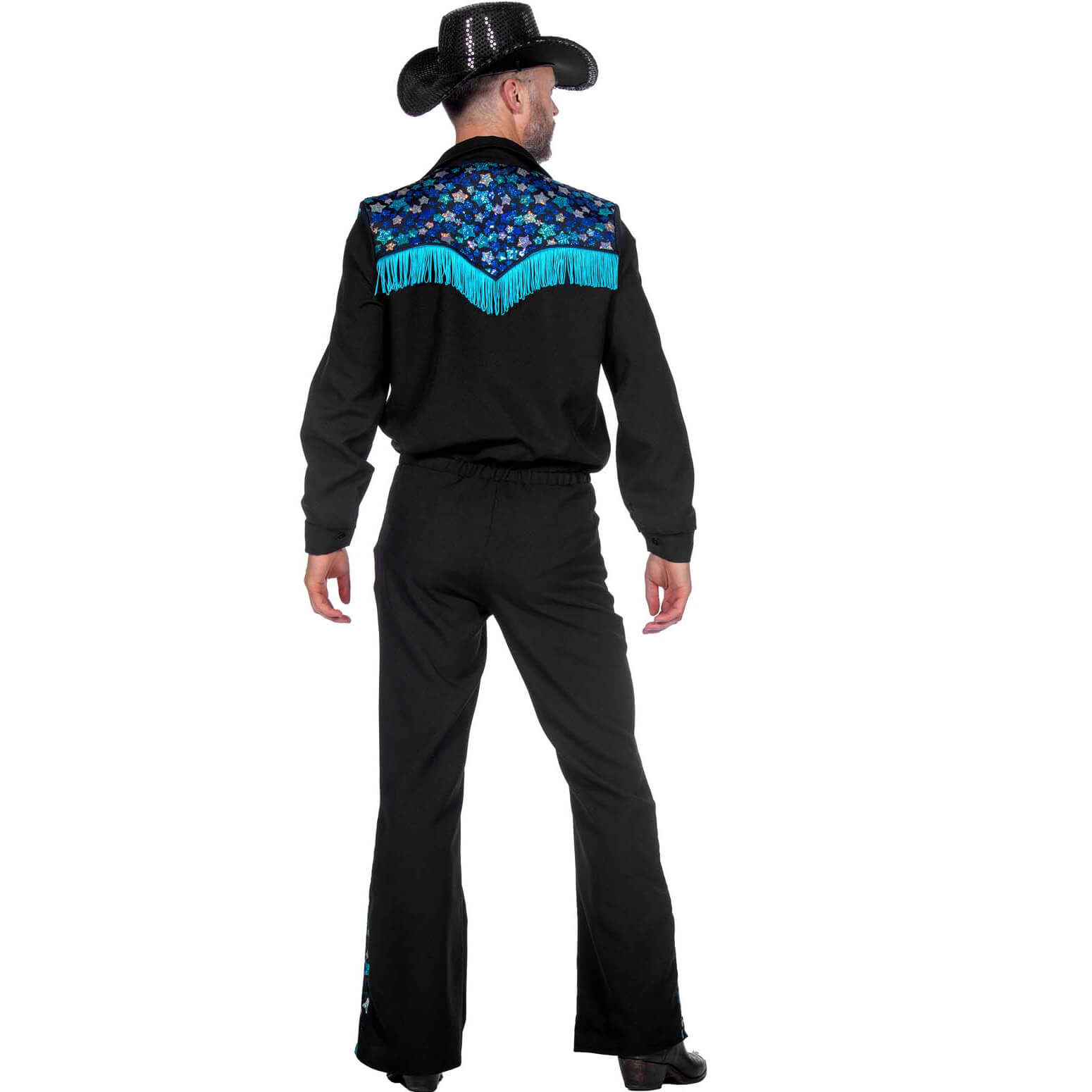 Cowboy / Superstar mit Sternen Kostüm Anzug Deluxe Festival Set Western mit Fransen Pailletten schwarz-türkis