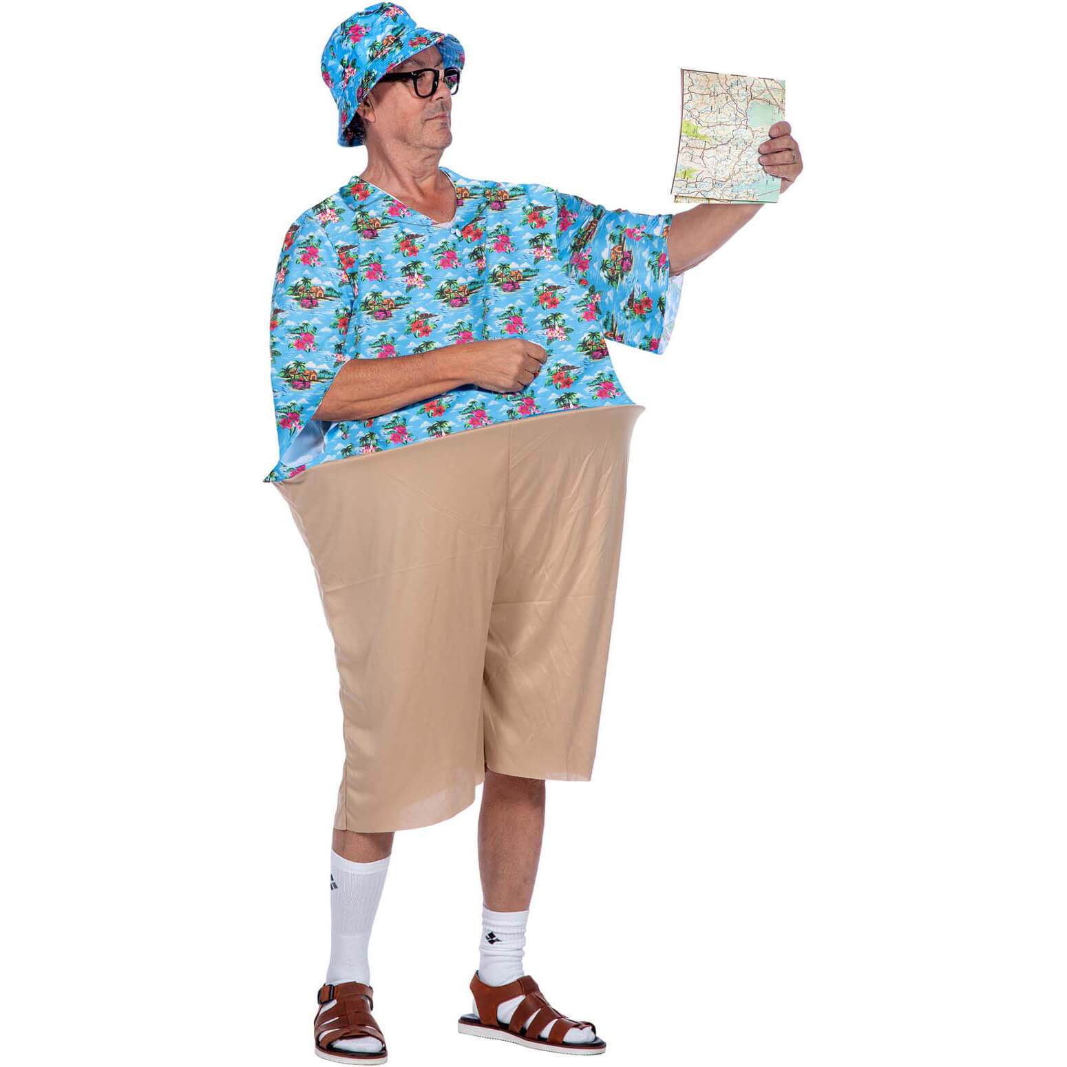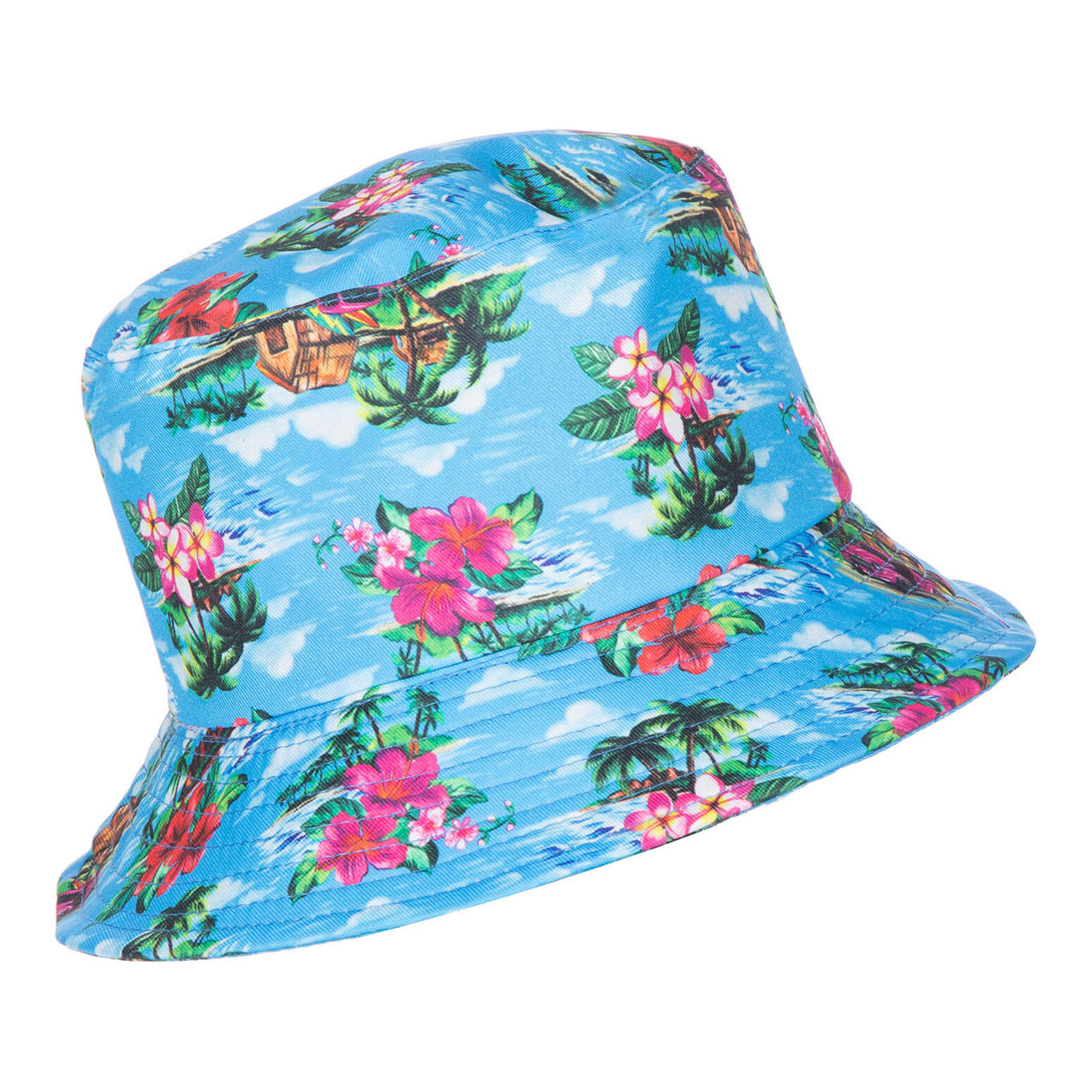 Hawaii / Blumen Eimerhut Fischerhut mit Wassser und Blumen zu Turistenkostüm blau-bunt