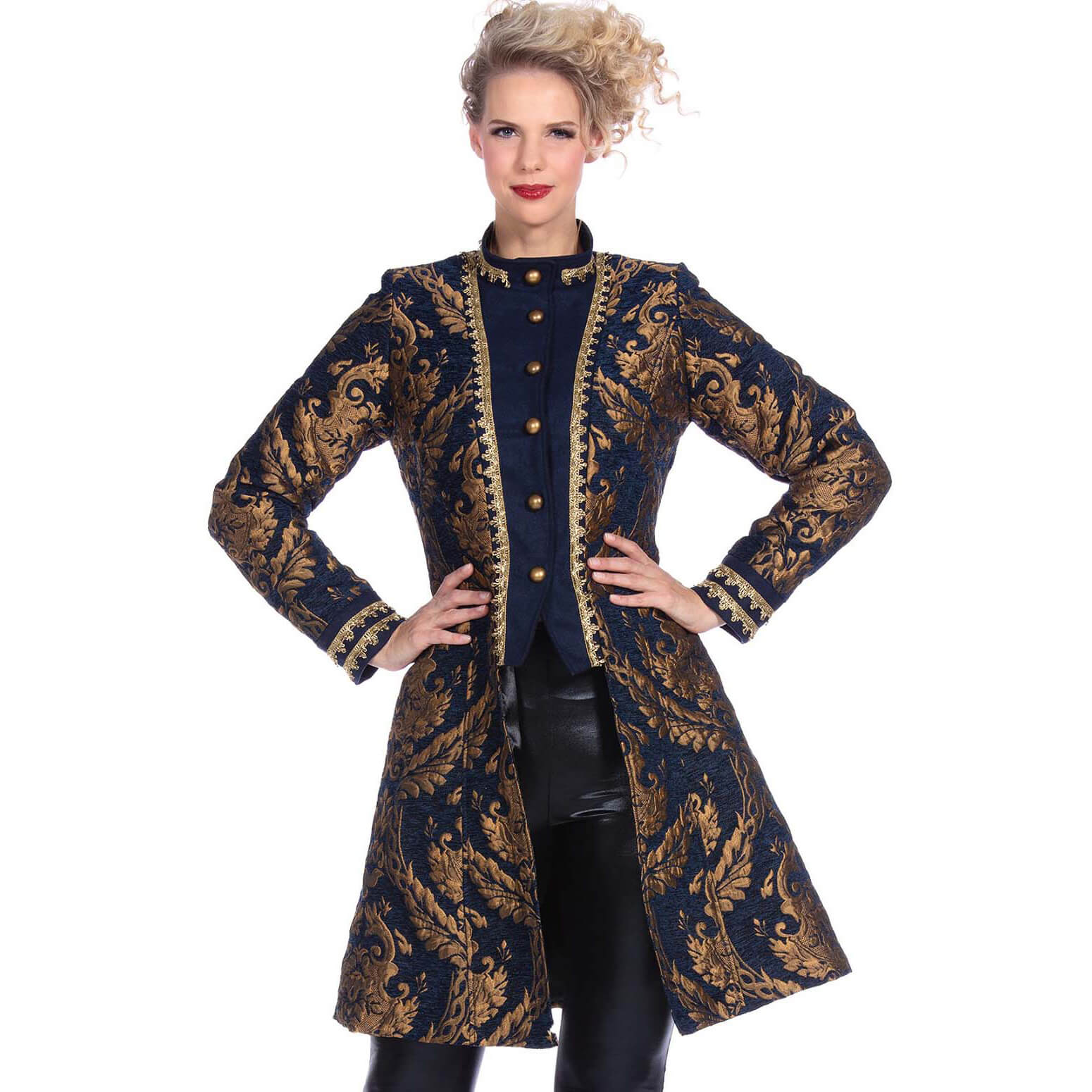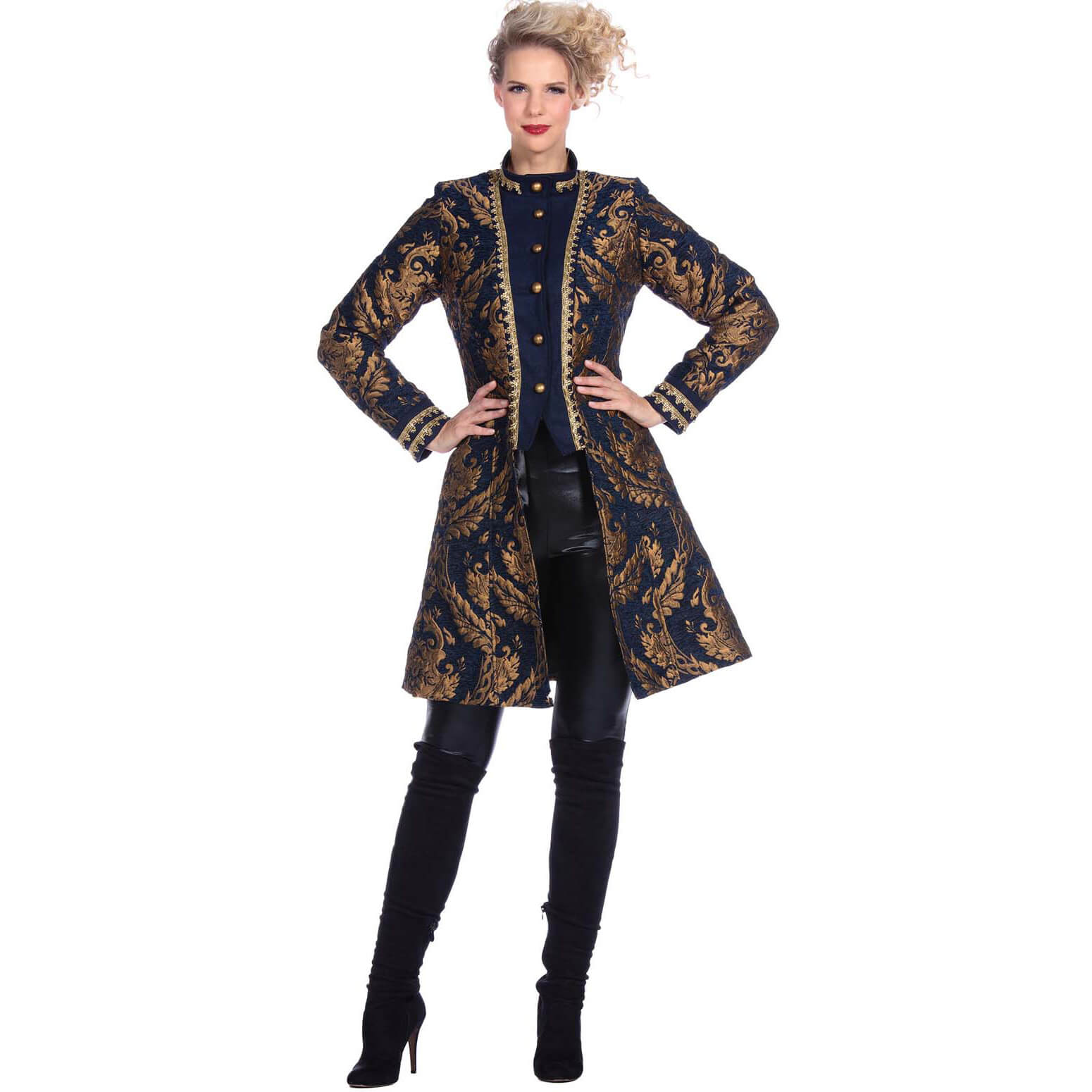Edeldame / Zirkusdompteurin Jacke Gehrock Brokat Deluxe dunkelblau-gold