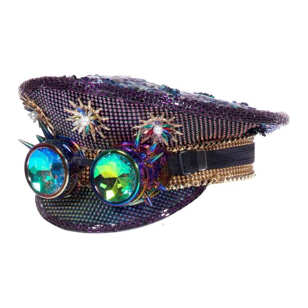 Show / Festival Mütze mit Goggles Burning Man mit Brille lila-bunt