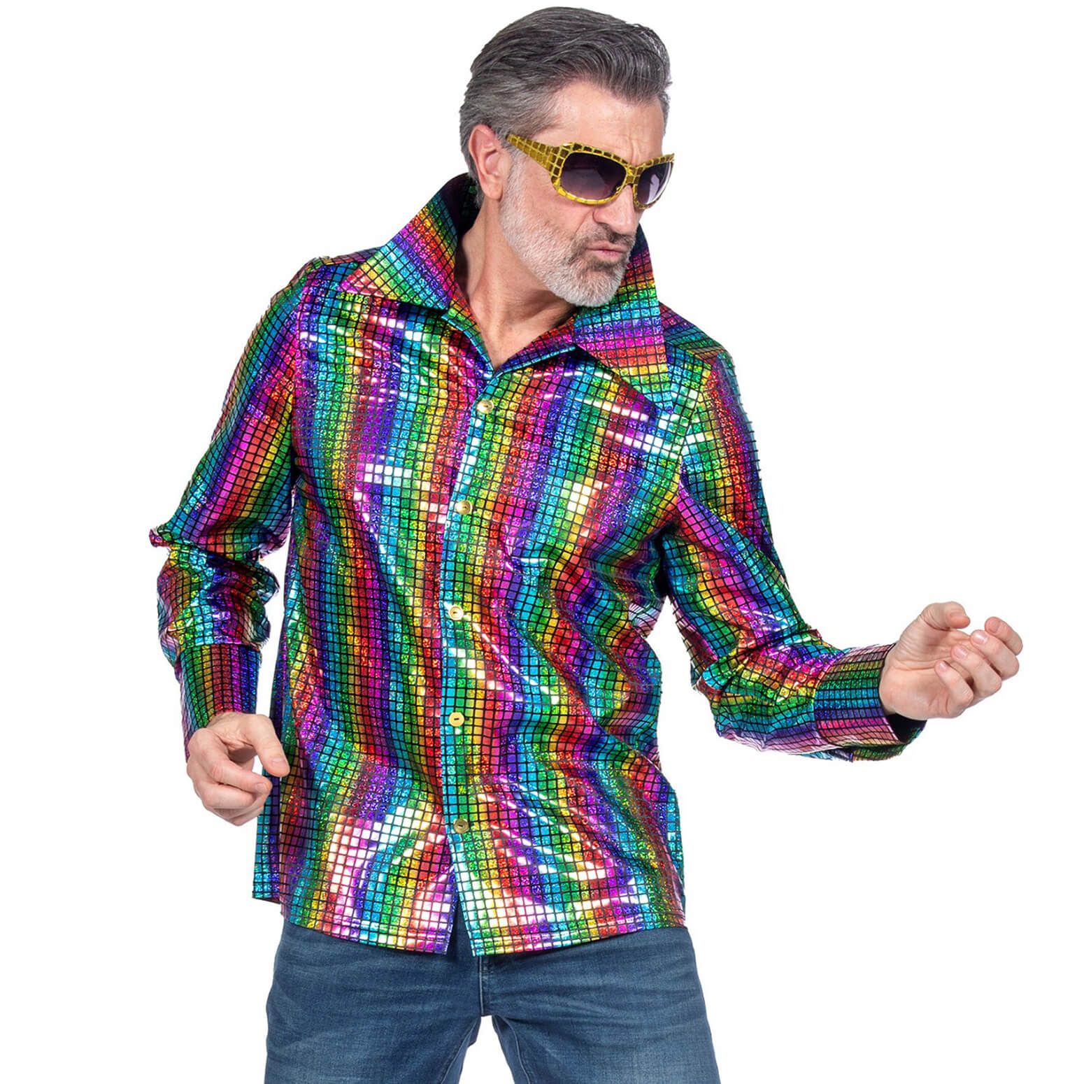 Show Disco Hemd Bluse metallic Deluxe quadratischen Pailletten regenbogen