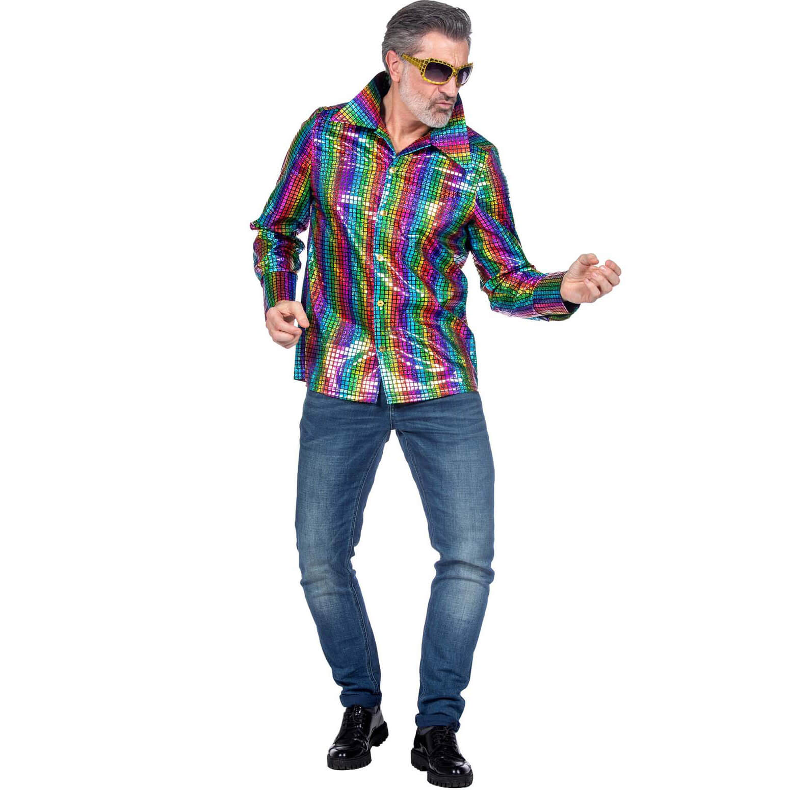 Show Disco Hemd Bluse metallic Deluxe quadratischen Pailletten regenbogen – (ARTIKEL/REFERNZ: 8720059075522/WB5317S-8720059075539/WB5317M-8720059075546/WB5317L-8720059075553/WB5317XL – Kategorie/Suche: – Hersteller: Wilbers & Wilbers)