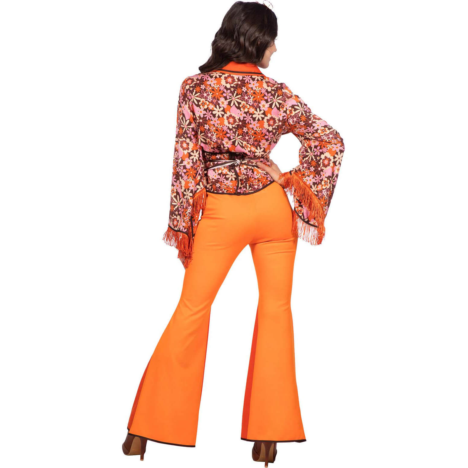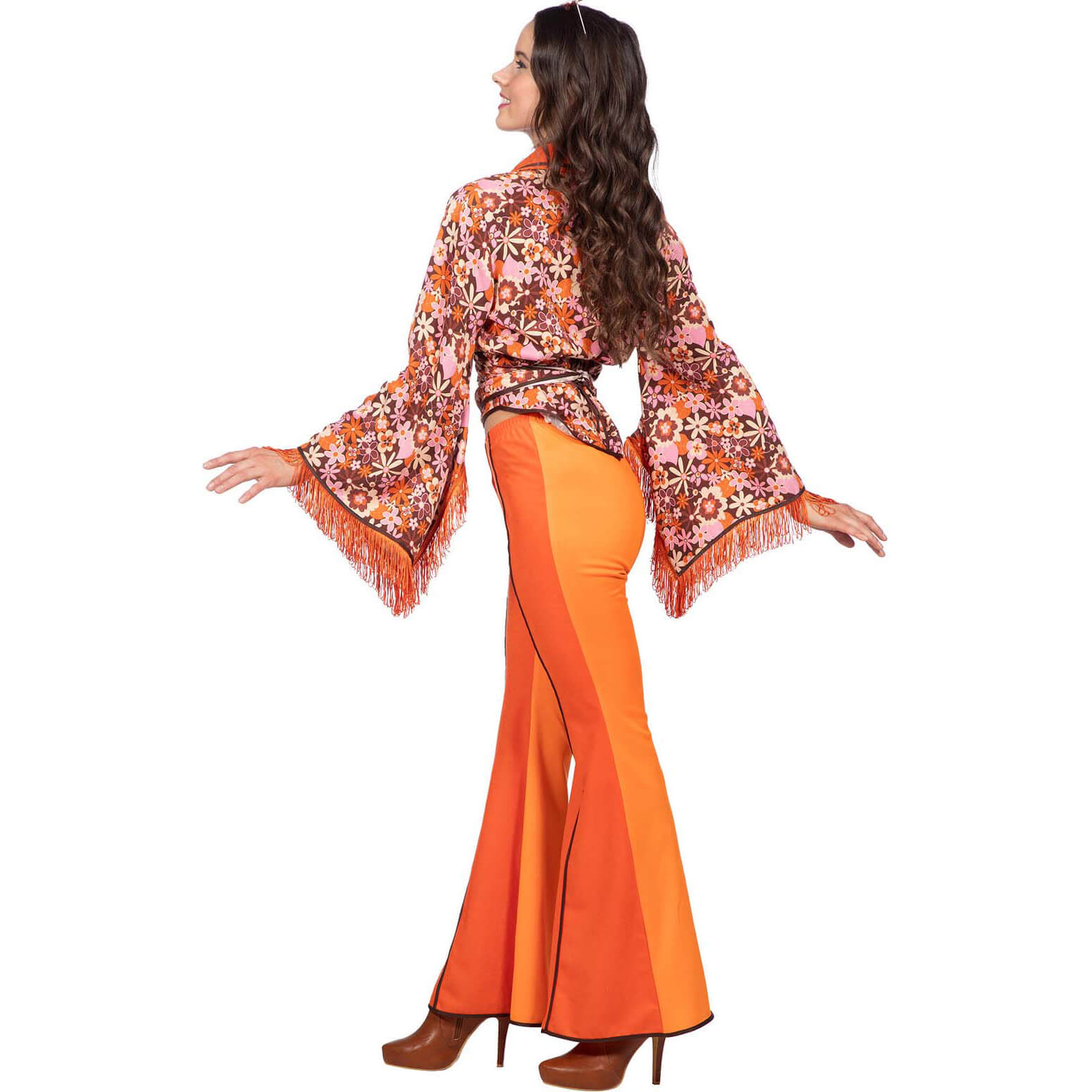 70er Jahre Hippiegirl Kostüm Anzug Schlaghose und Wickelbluse mit Fransen Retro Deluxe orange-rosa