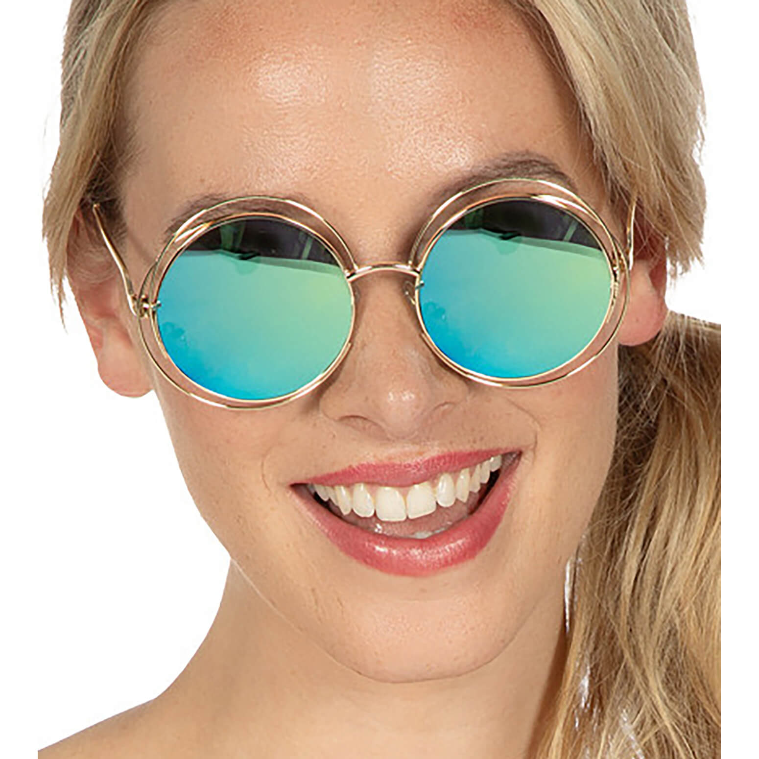 Superstars Pimp / Festival Charakterbrille Retro rund mit doppeltem Drahtrahmen und Farbverlauf blau-grün