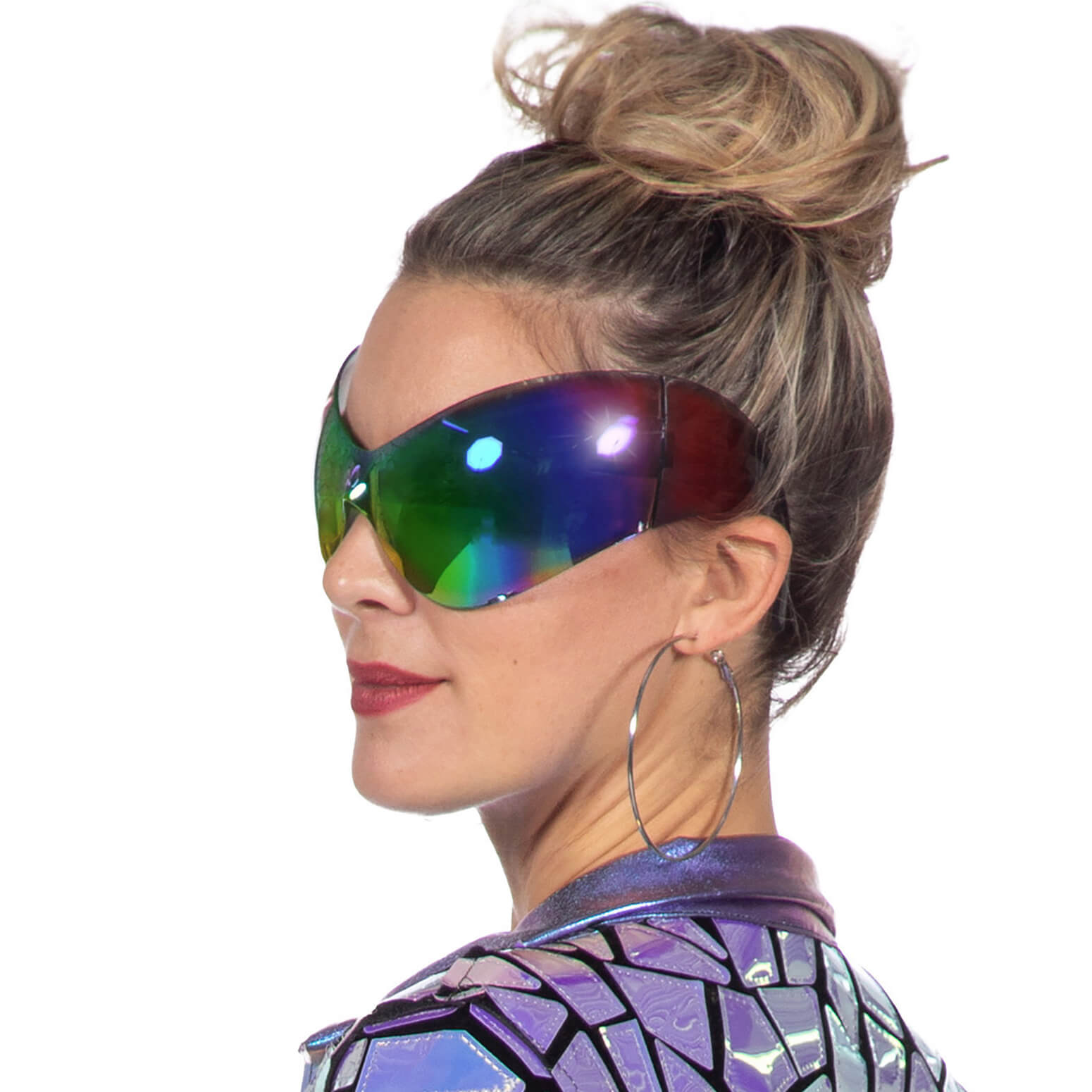 Superstars Pimp / Festival / Alien Charakterbrille Retro durchgehend regenbogenverspiegelt auch als Insektenaugen bunt