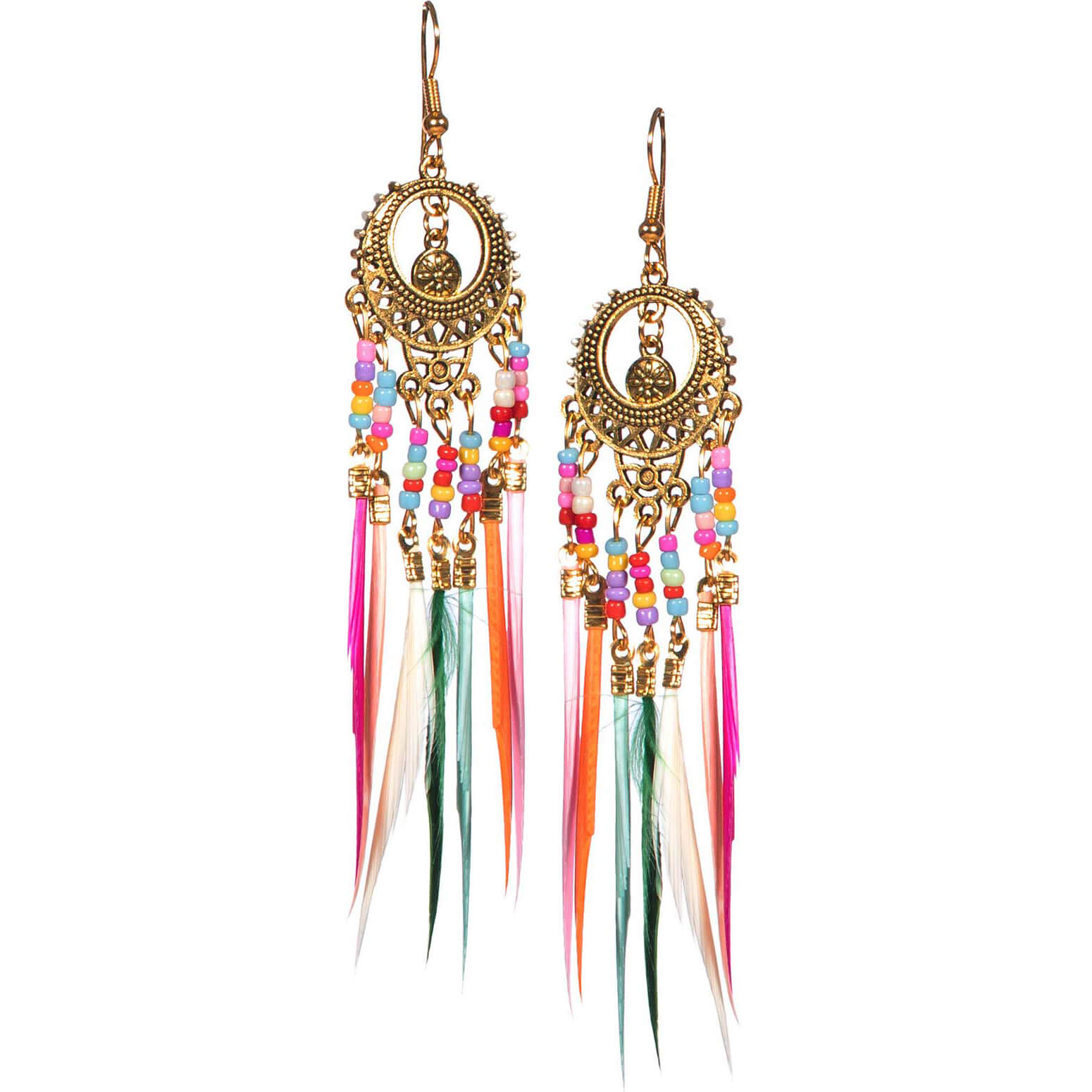 Hippie/Indianer Ohrringe Ohrhänger für Ohrlöcher mit Federn und kleinen Perlen bunt – (ARTIKEL/REFERNZ: 8720059081523/WB3315598 – Kategorie/Suche: – Hersteller: Wilbers & Wilbers)